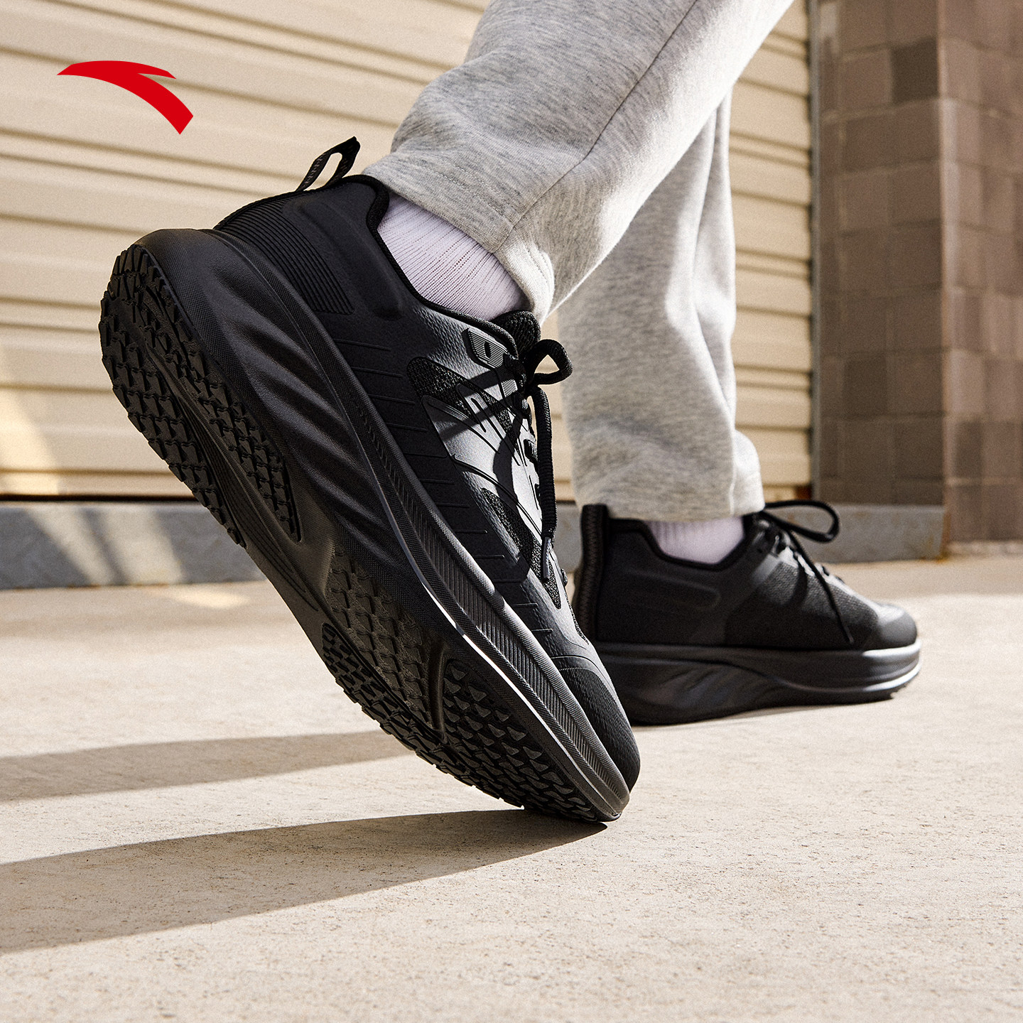 安踏城际丨缓震回弹慢跑鞋男鞋冬季防滑耐磨黑色运动鞋112545592