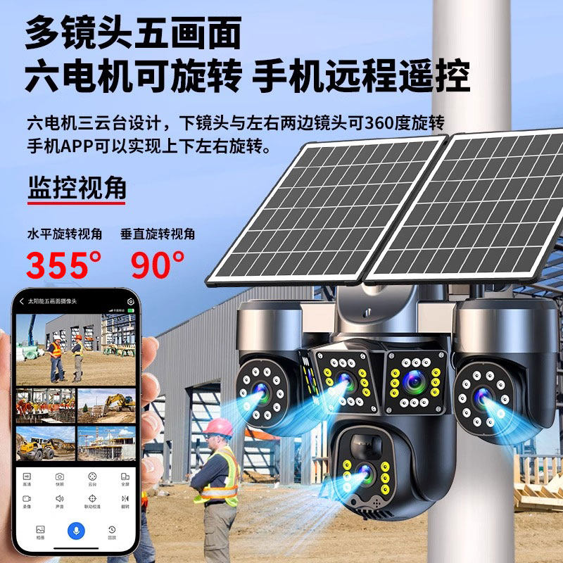 监控360度无死角室外摄像头手机远程4G免流量家用无网无电太阳能