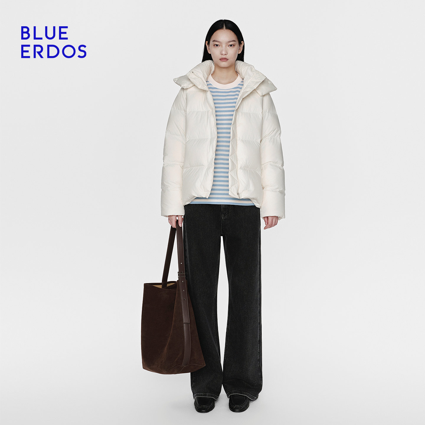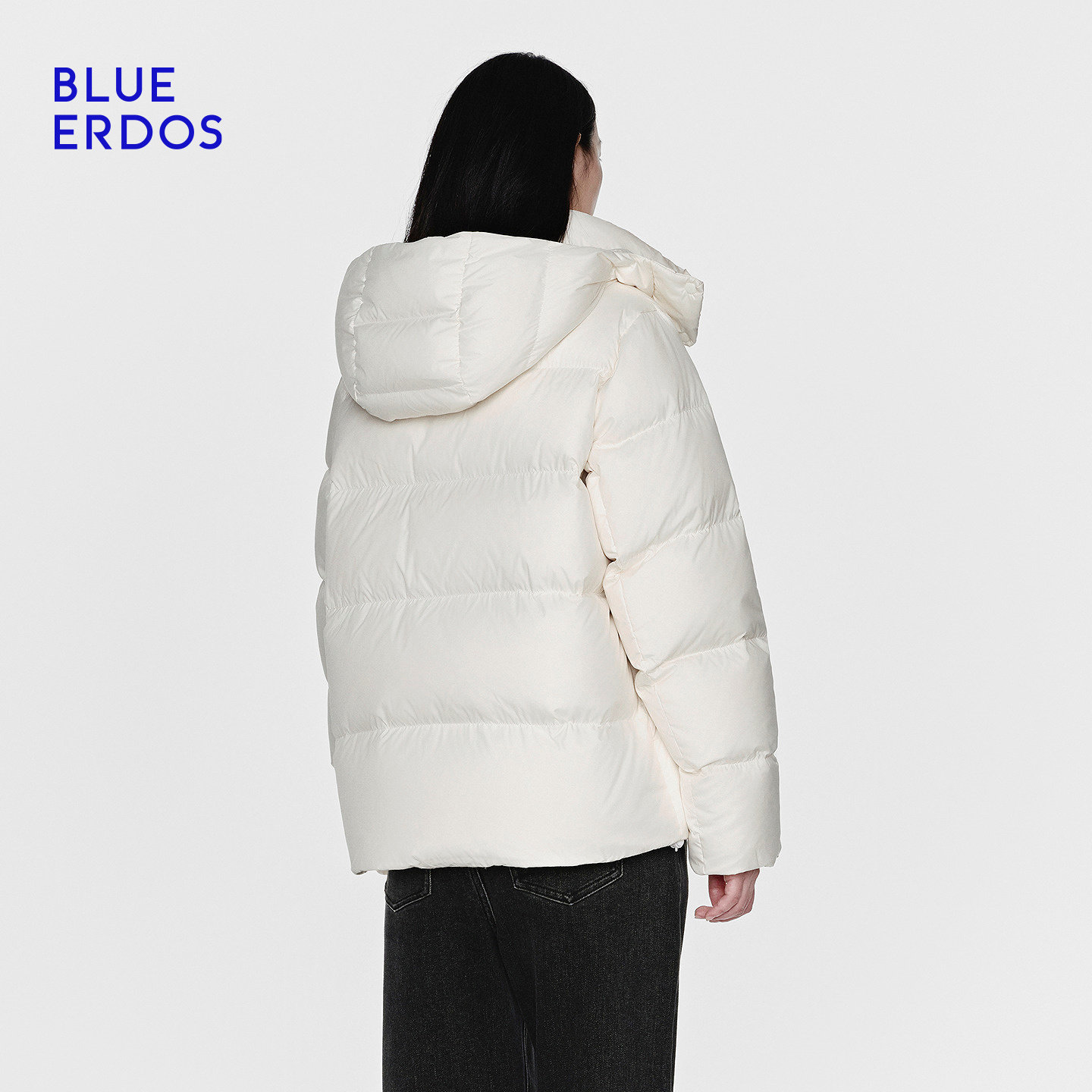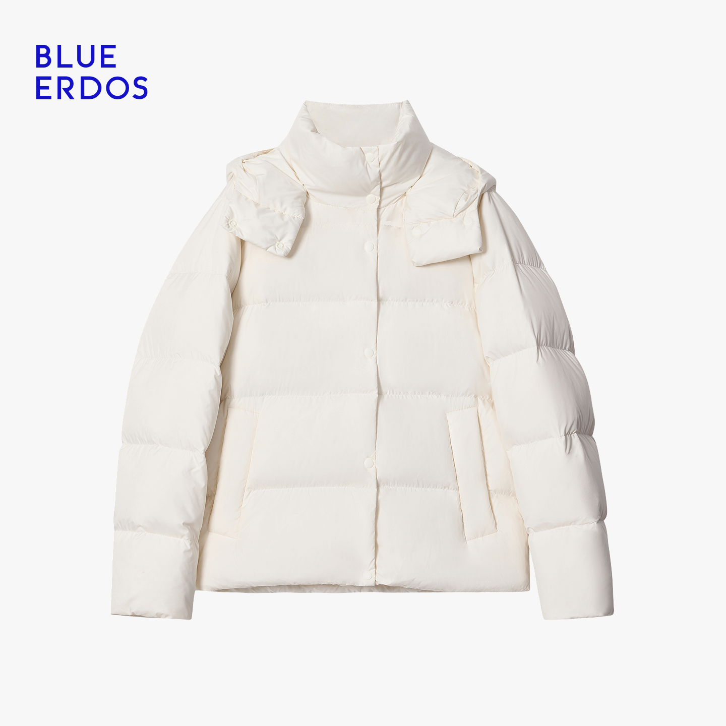 BLUE ERDOS 冬季新品质感休闲白色可拆卸帽短款羽绒服外套女