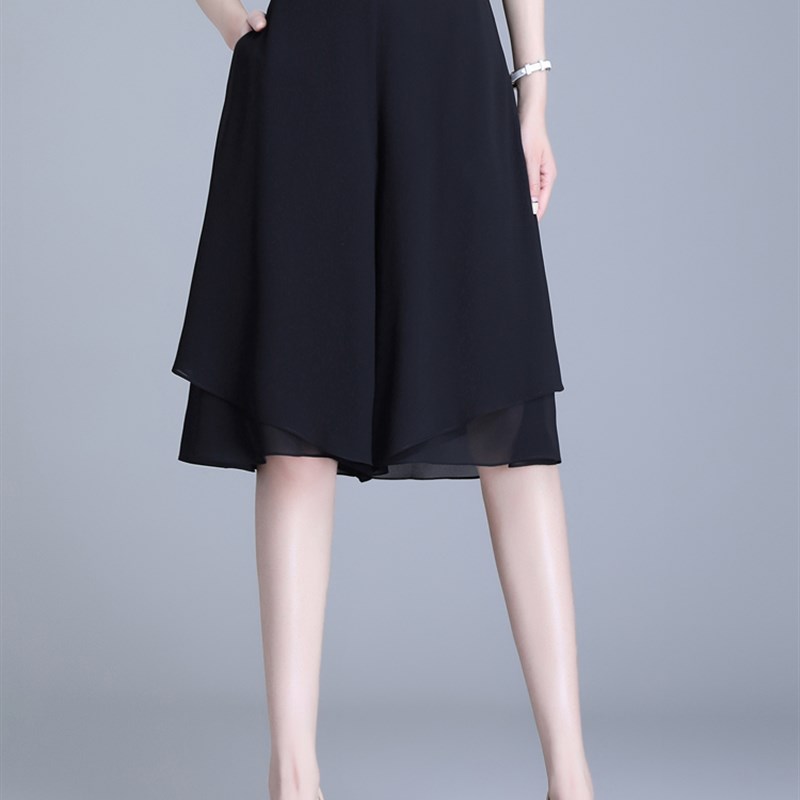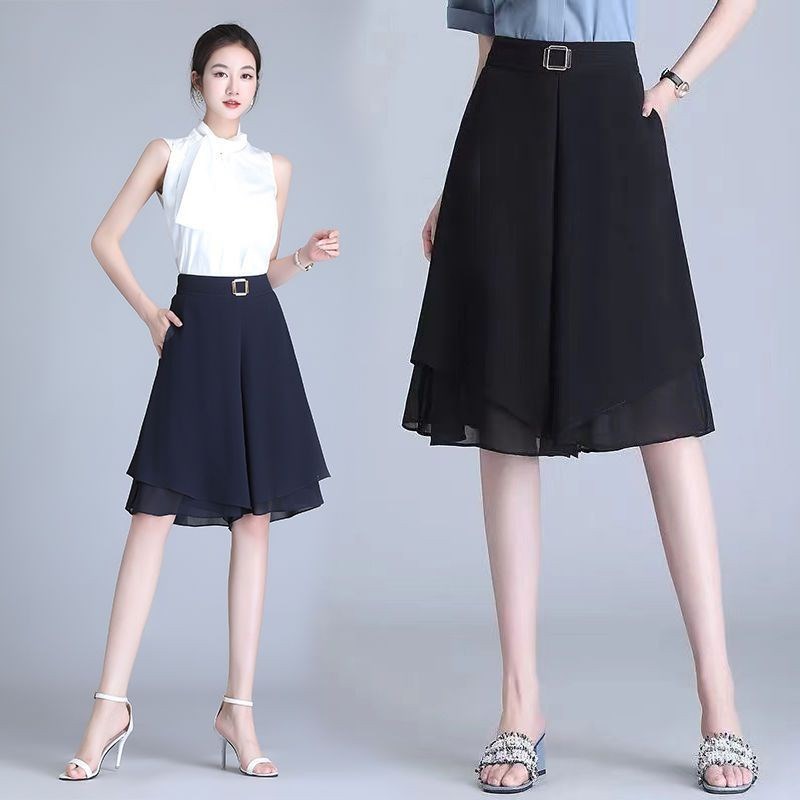 雪纺阔腿裤女夏季薄款a字裙裤垂感宽松高腰显瘦小个子裤子五分裤