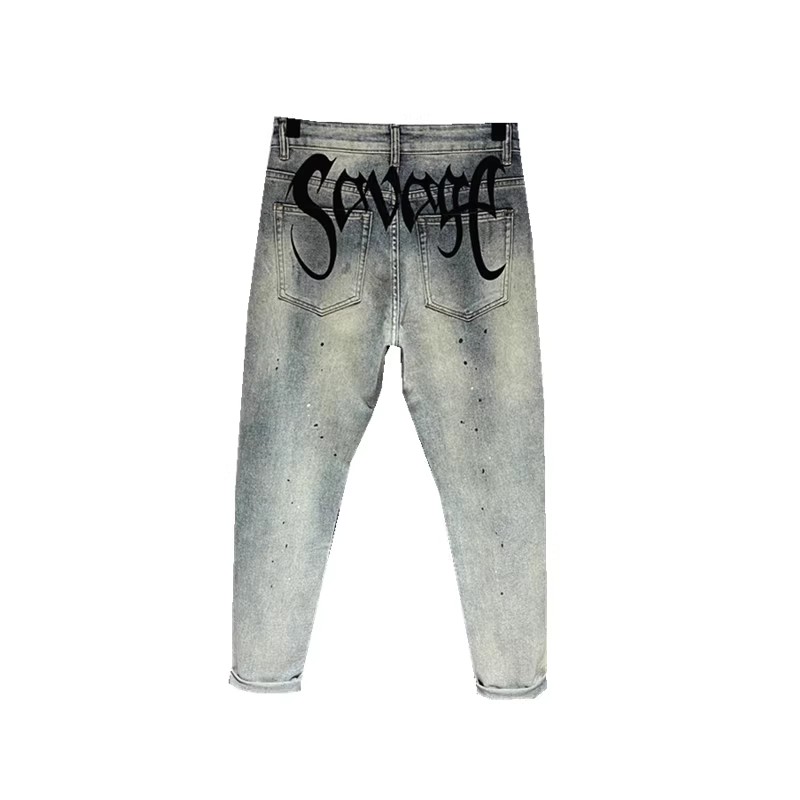 美式高街水洗牛仔裤男秋季时尚做旧小脚裤百搭潮流宽松直筒休闲裤