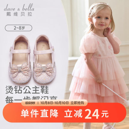 戴维贝拉儿童皮鞋粉色女童公主鞋秋季水晶鞋新款宝宝童鞋夏季凉鞋