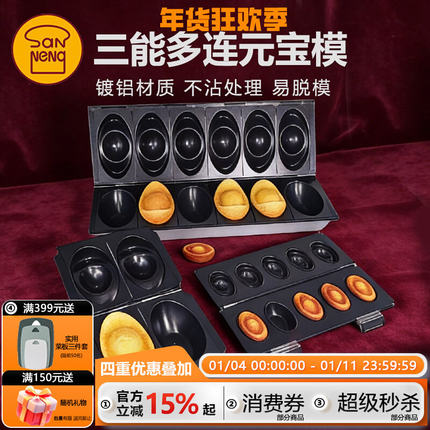 三能2连元宝模5连6连金元宝面包模不沾两连不粘吐司烤箱烘焙模具