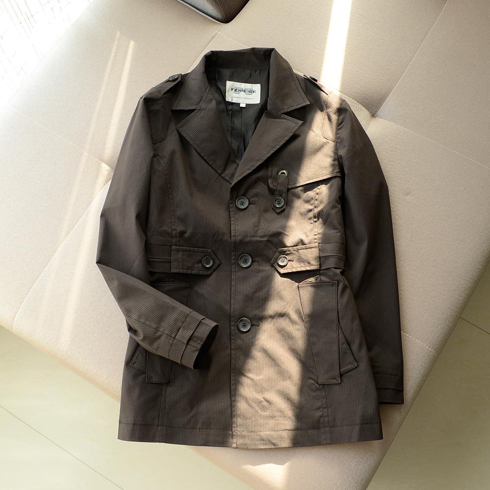 春季英伦风中长款设计外贸男装尾货西服领多口袋单排扣工装外套