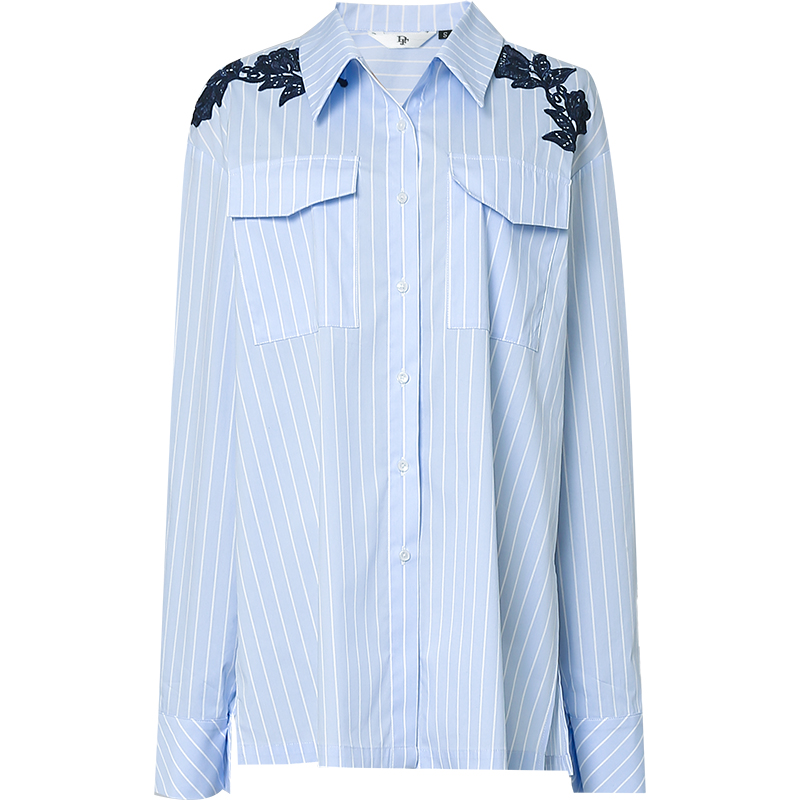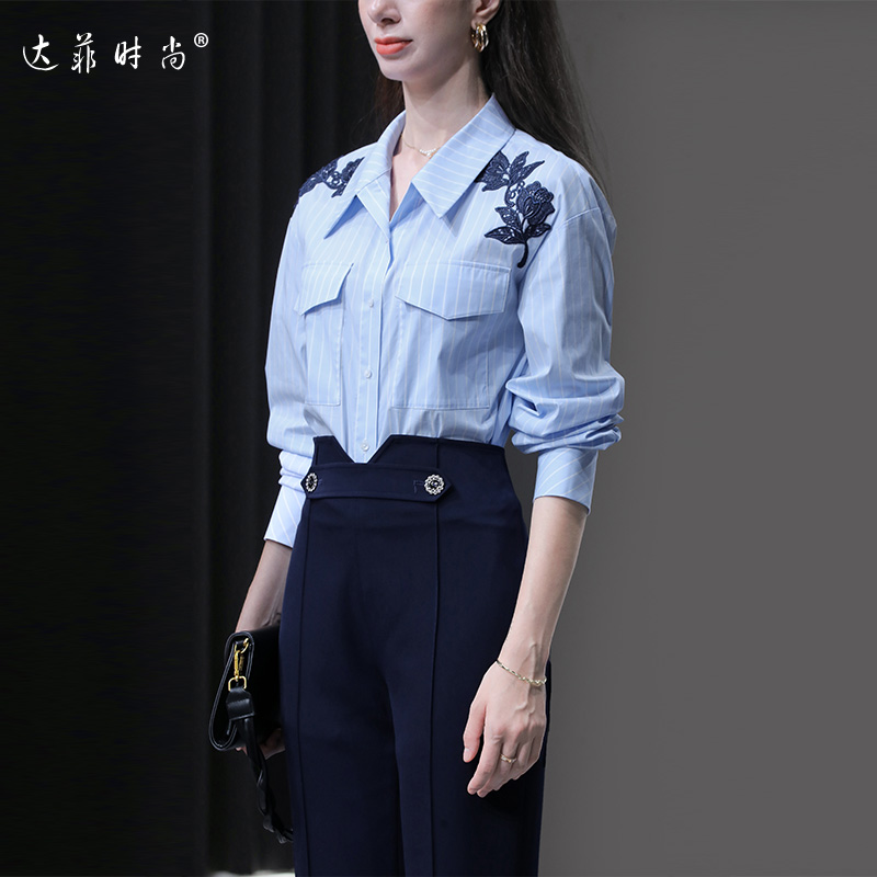 2025年秋季新款时尚气质休闲撞色条纹宽松版衬衣百搭通勤上衣女