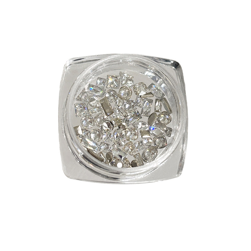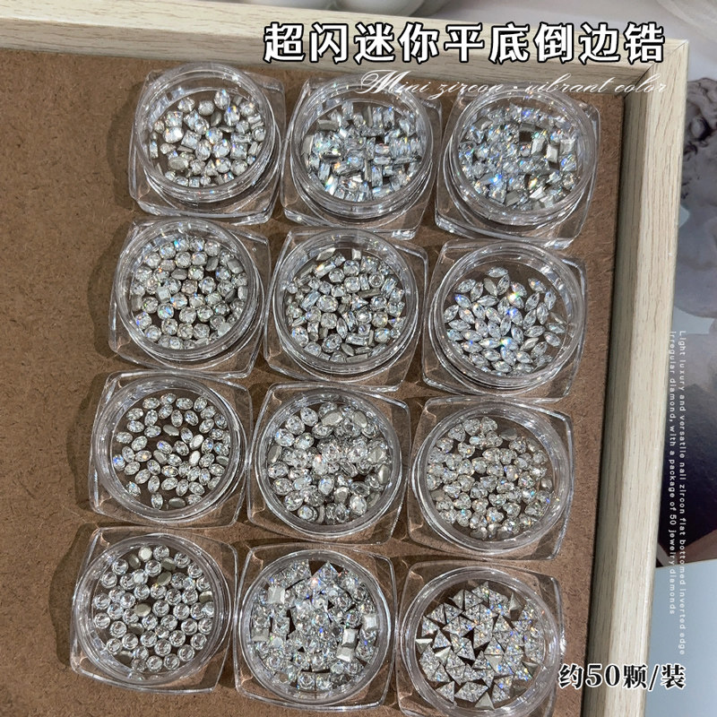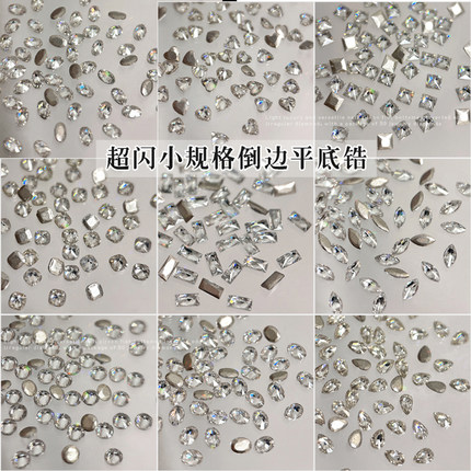 迷你倒边平底小锆石美甲饰品爆闪透白马眼菱形水滴小号异形钻混装
