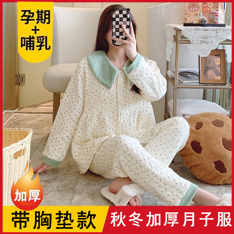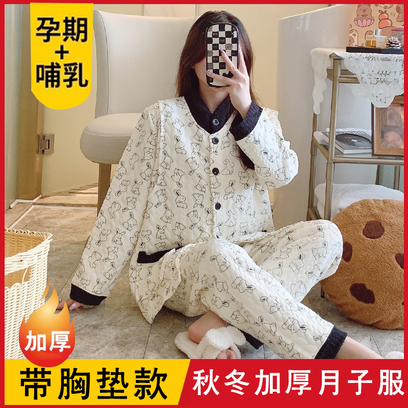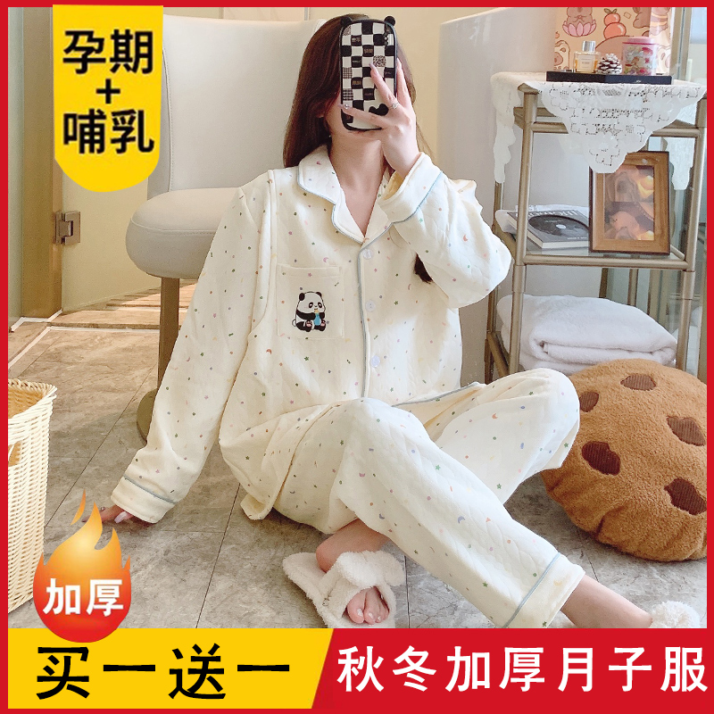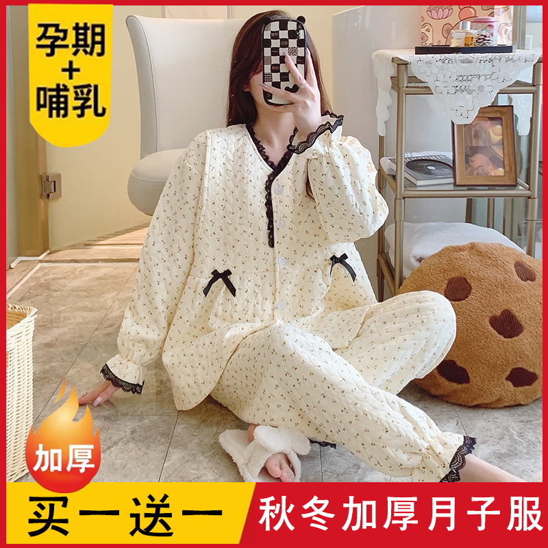 月子服春秋季产妇加厚空气棉产后冬季厚款纯棉孕妇哺乳睡衣家居服