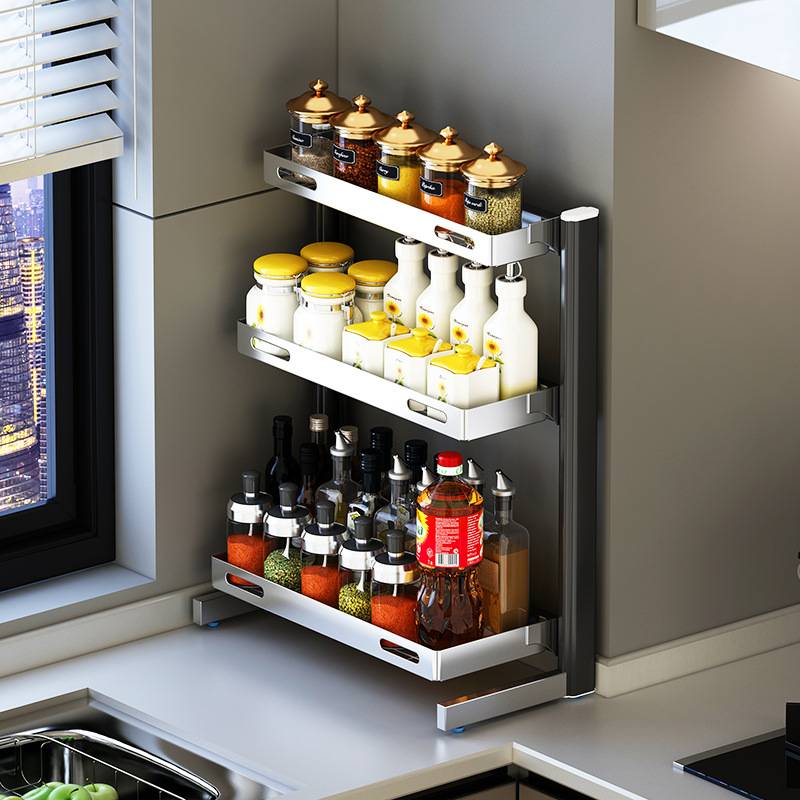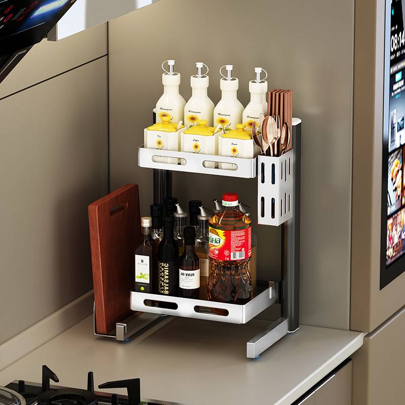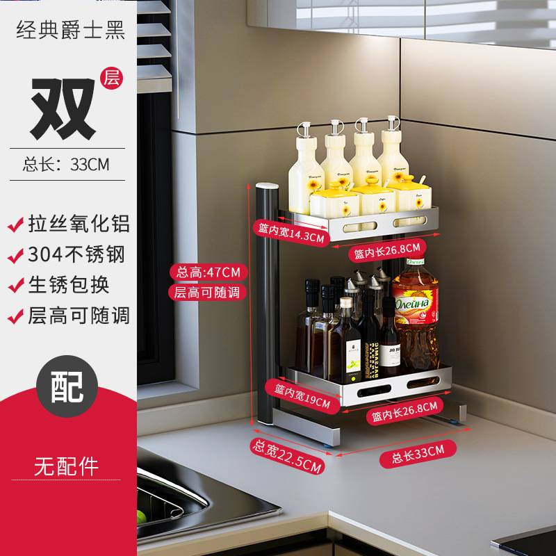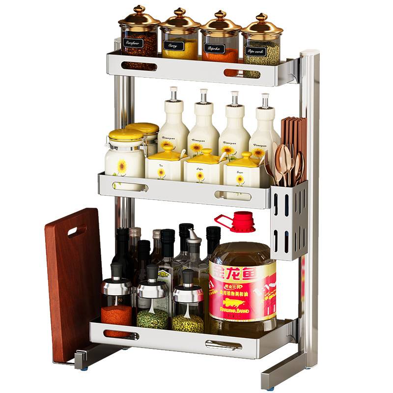 新款厨房调料置物架台面大号不锈钢放佐料装盐调味罐收纳架子灶台