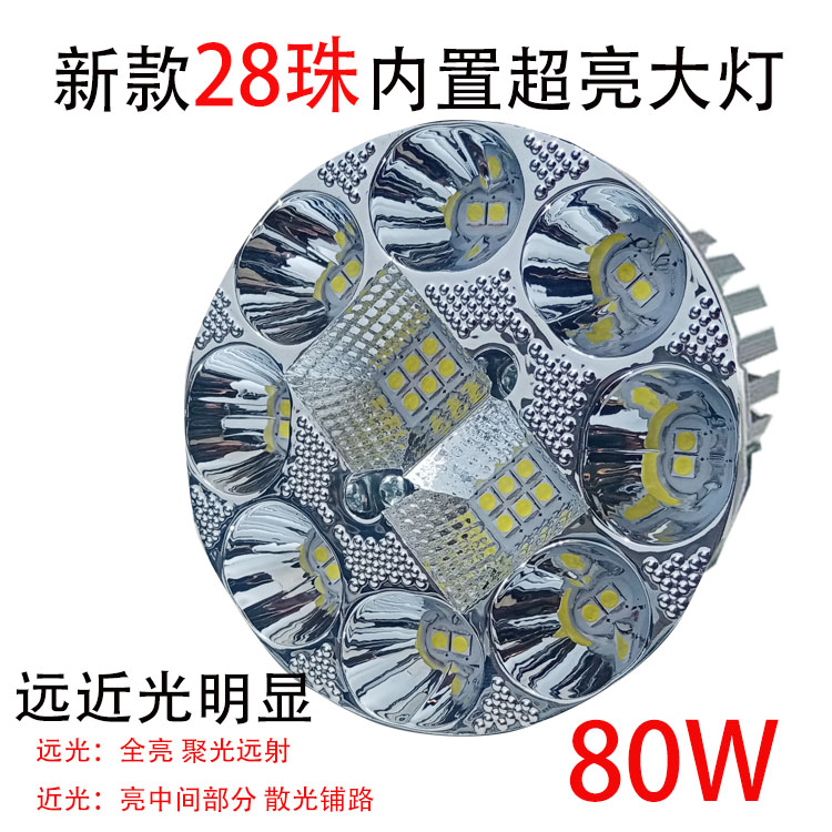 电动车超亮大灯摩托车led大灯12v48v改装灯远近光踏板车内置灯