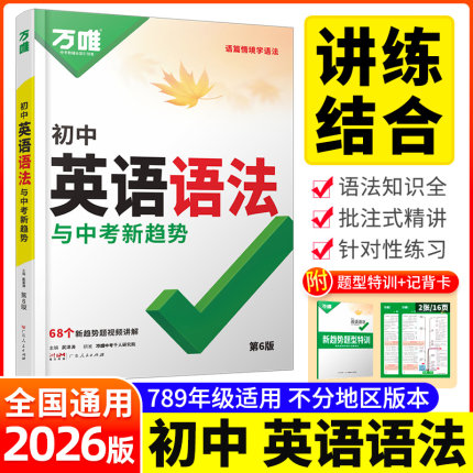 2026万唯中考英语语法知识大全 初一初二初三七八九年级初中英语单词阅读理解词汇全解完形填空试题研究练习册 万维中考复习资料书