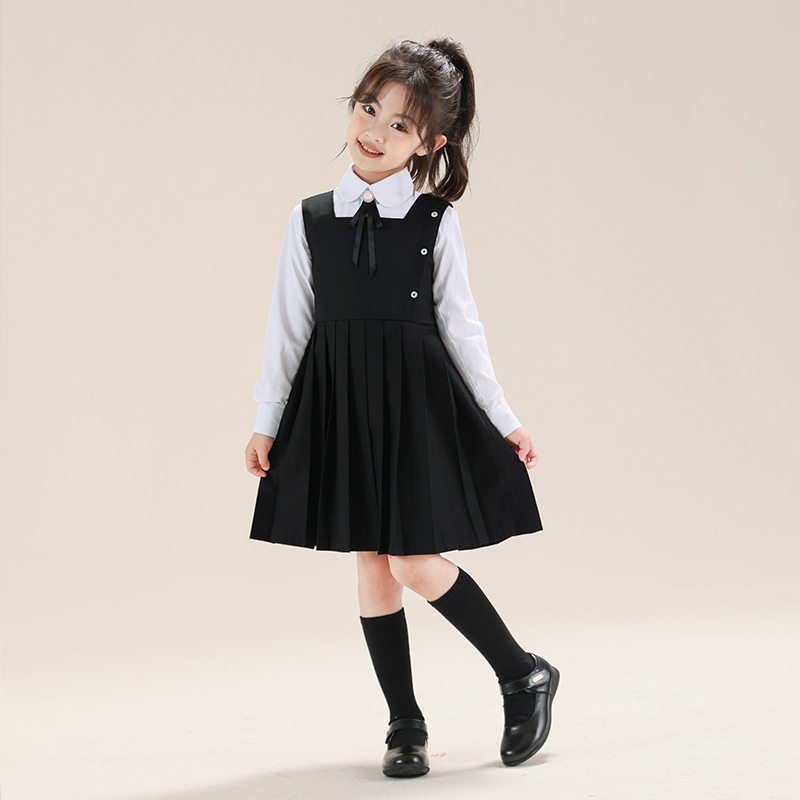 春秋冬女童学院风连衣裙女孩百褶中大童学生表演出服儿童背心裙子
