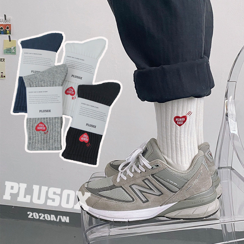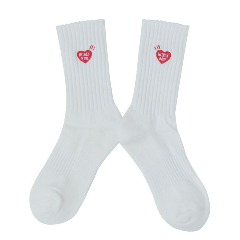 长款中高帮针织男女袜欧美网红爱心小红心袜刺绣运动袜