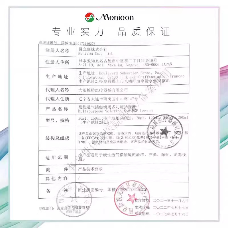 美尼康护理液240ml硬性隐形眼镜角膜塑性OK镜除蛋白护理RGP