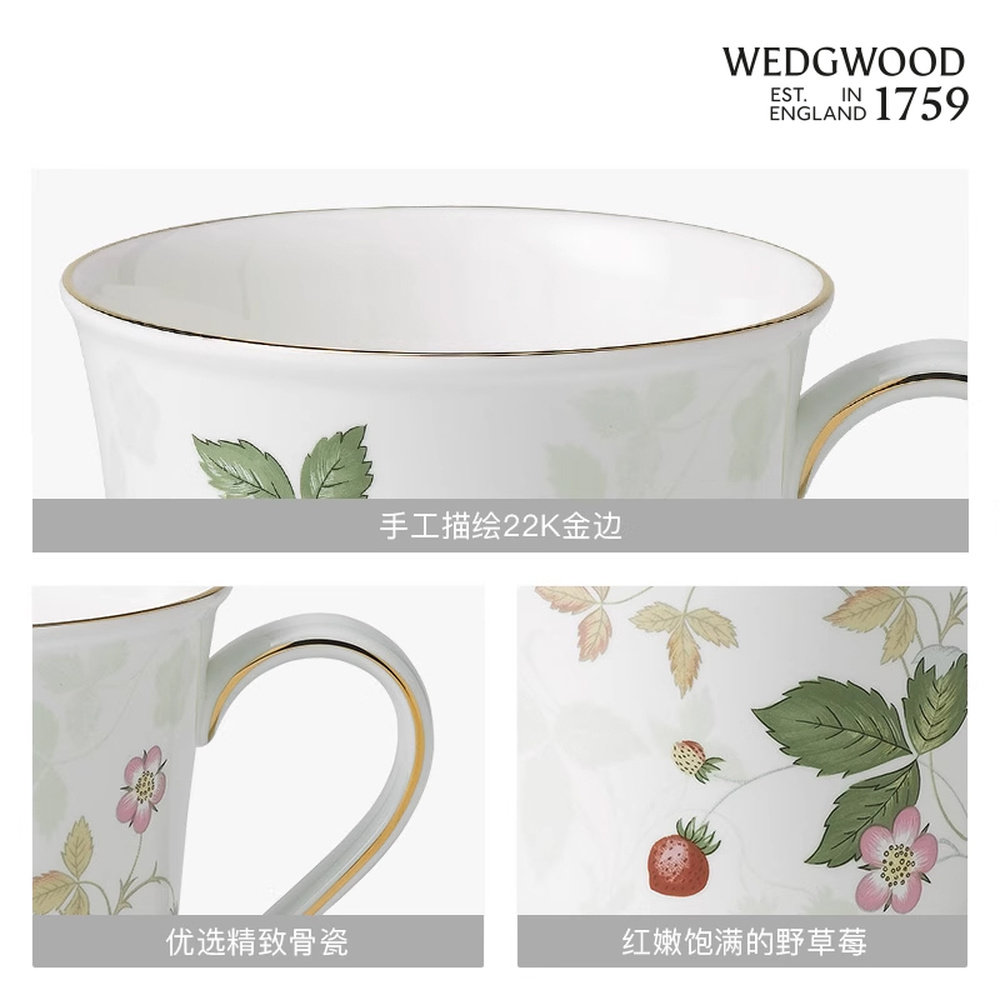 WEDGWOOD威基伍德野草莓马克杯骨瓷杯子水杯茶杯咖啡杯