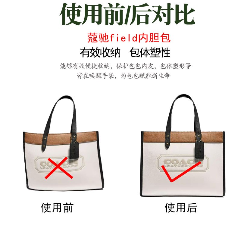 适用coach蔻驰拼色托特内胆包中包迷你22横30竖40field内衬袋包撑
