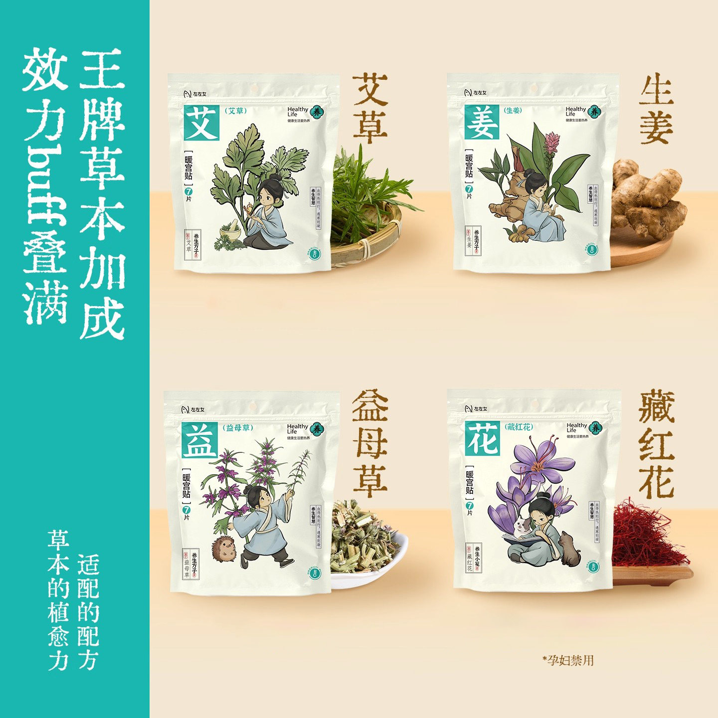 买1送1左左女暖宫贴自发热暖贴生理期暖宝宝生姜益母草艾草藏红花