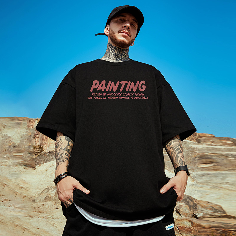 2025重磅美式潮牌宽松白色打底T恤胖子短袖加肥加大码男装半袖夏