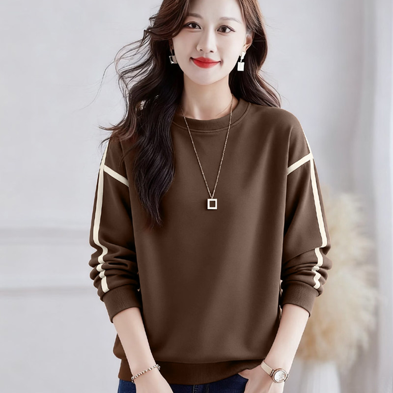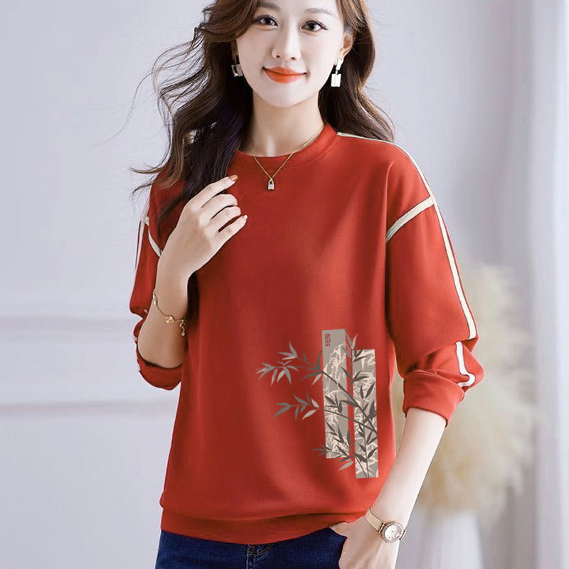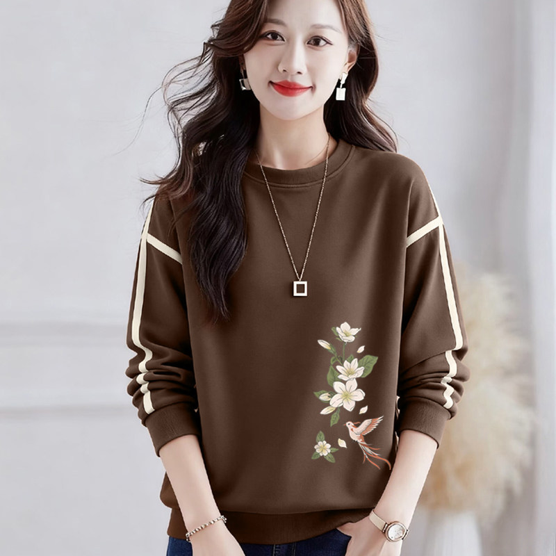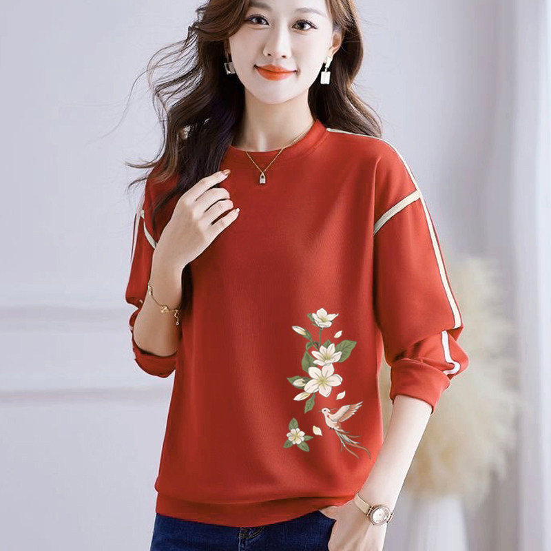 外贸出口秋冬长袖印花卫衣女士宽松大码圆领文艺减龄休闲纯棉上衣