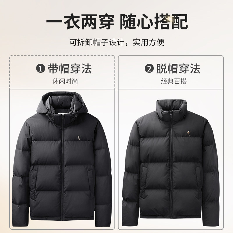 【245G重磅】与狼共舞连帽羽绒服男可拆卸帽2025冬季新款保暖外套