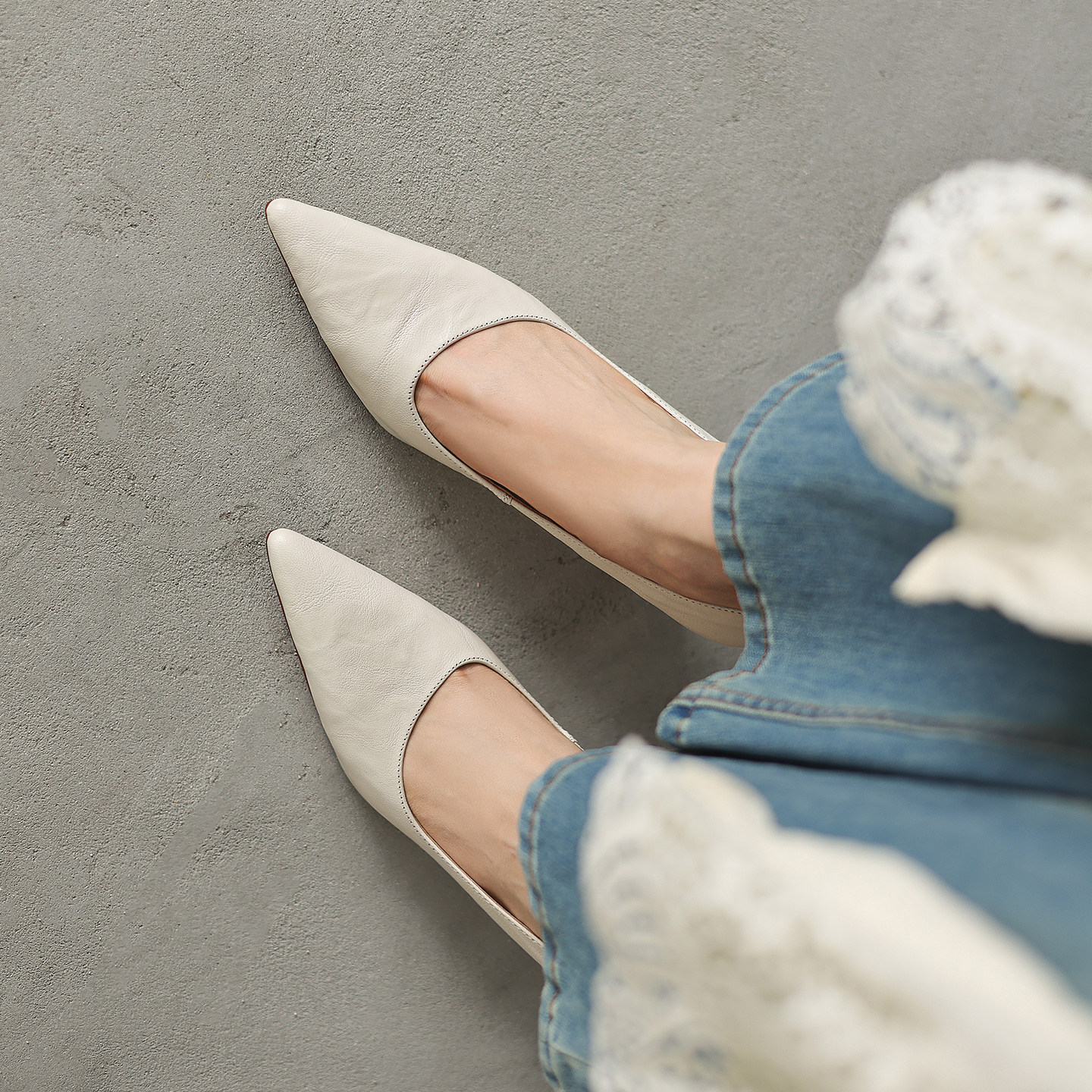 清晰质感~!法式气质尖头显瘦斜口细跟单鞋女羊皮百搭浅口高跟鞋