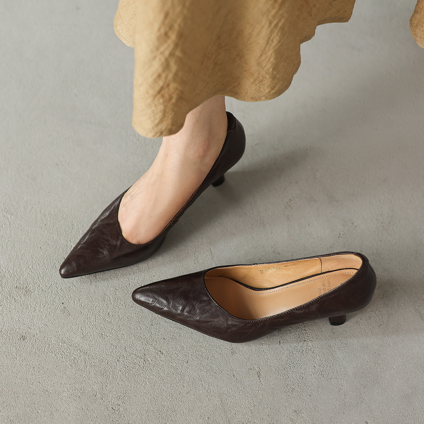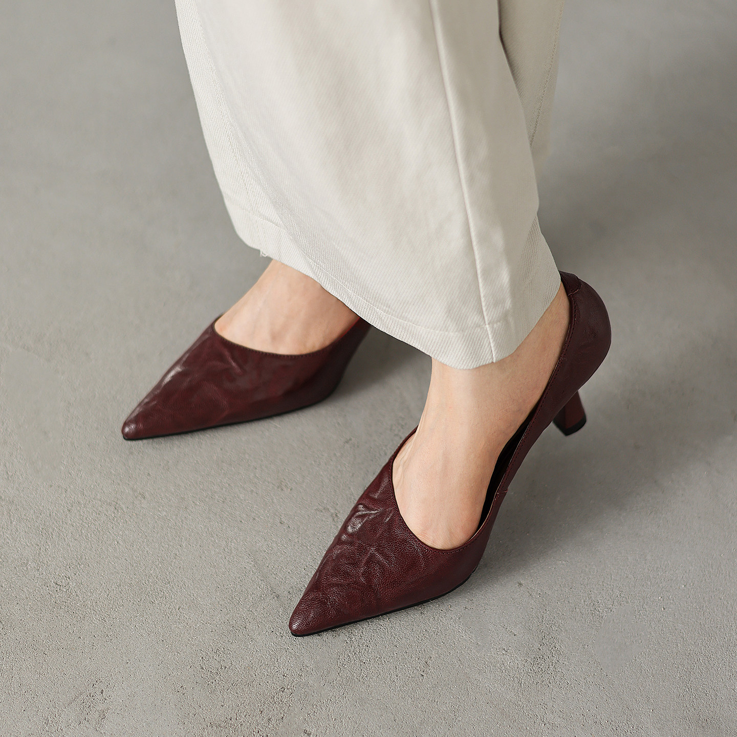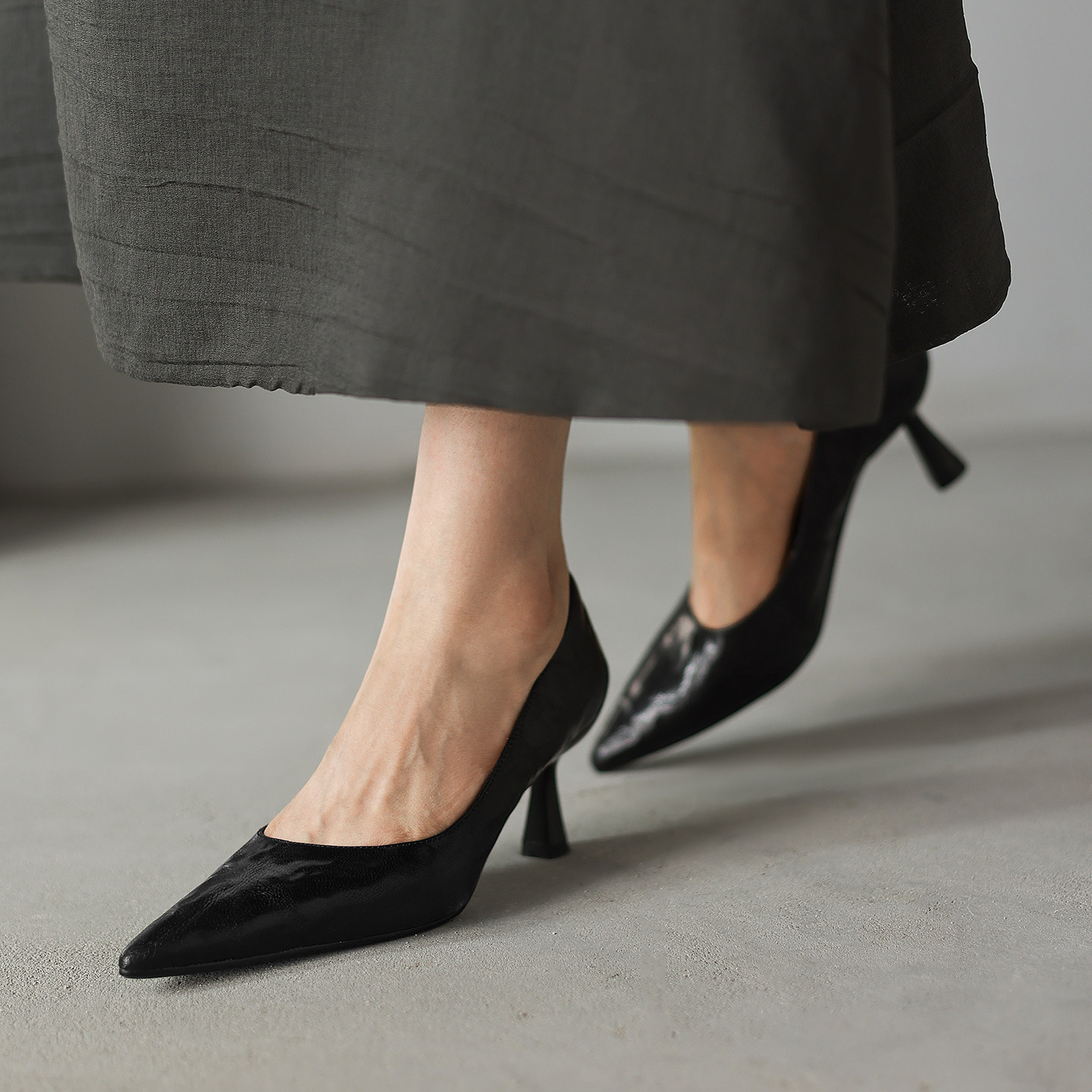 法式气质尖头显瘦斜口羊皮高跟鞋