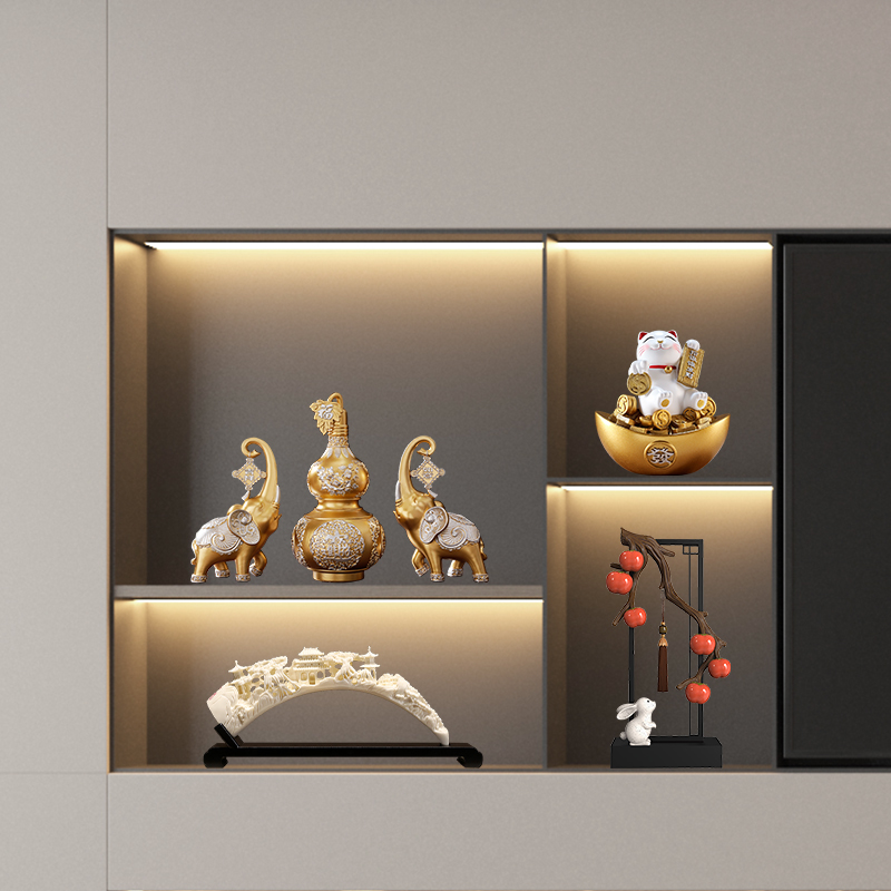 葫芦摆件大象一对招财客厅吉象中式工艺品入宅大吉酒柜家居装饰