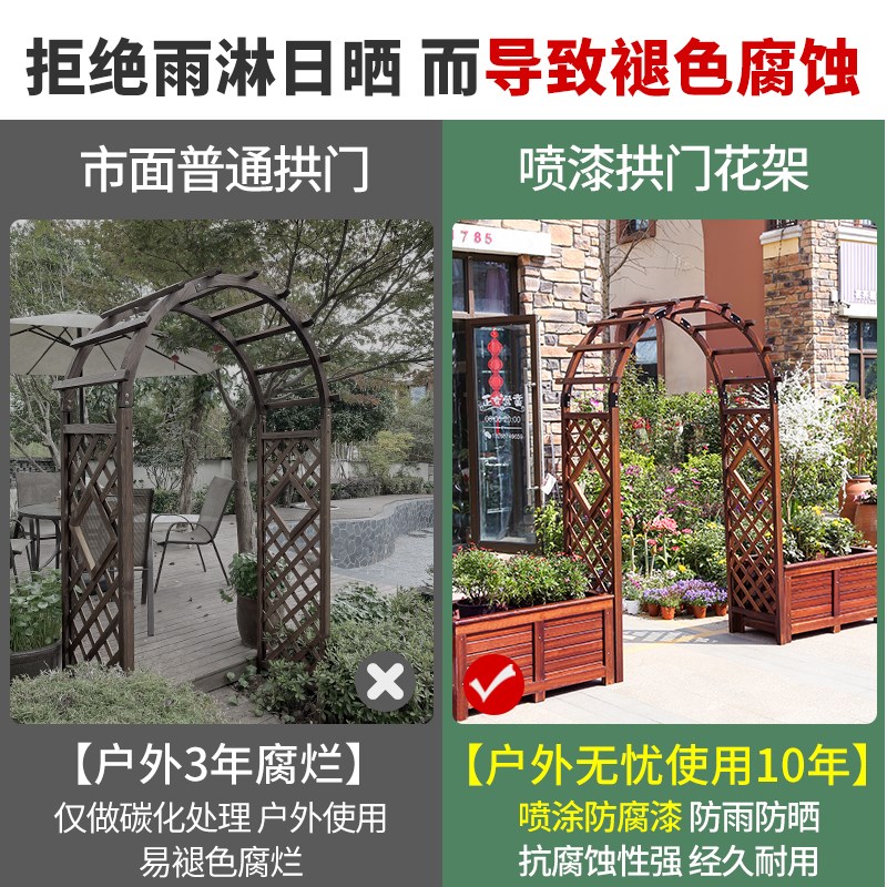 室外拱门爬藤花架防腐木庭院装饰门花园栅栏围栏门网格户外葡萄架