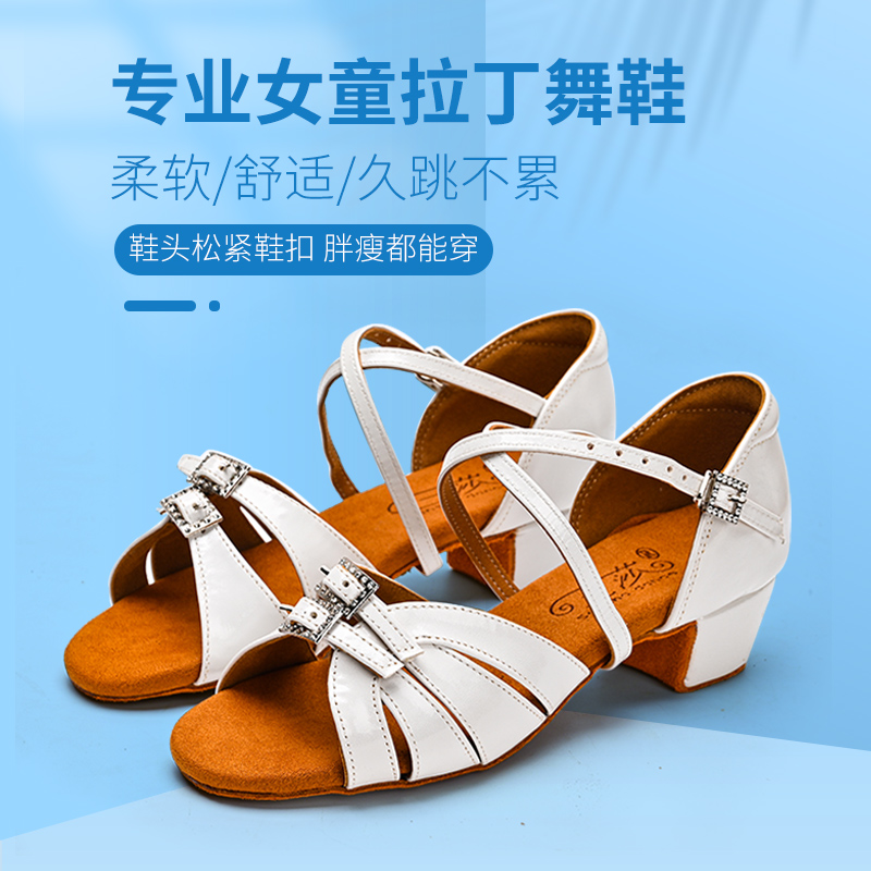 三莎正品儿童拉丁舞鞋新款白色专业舞蹈鞋儿童女孩软底初学者舞鞋