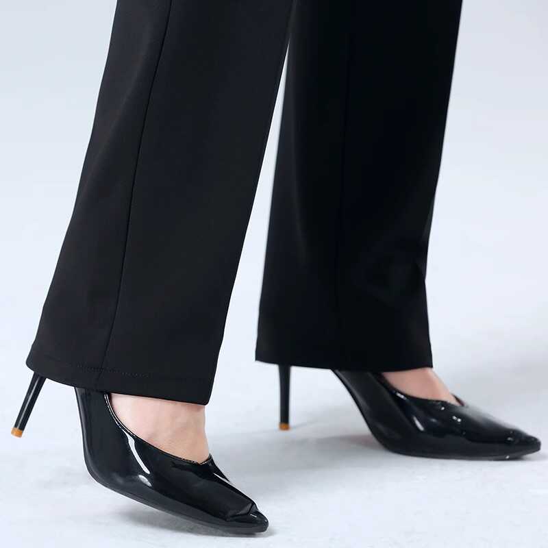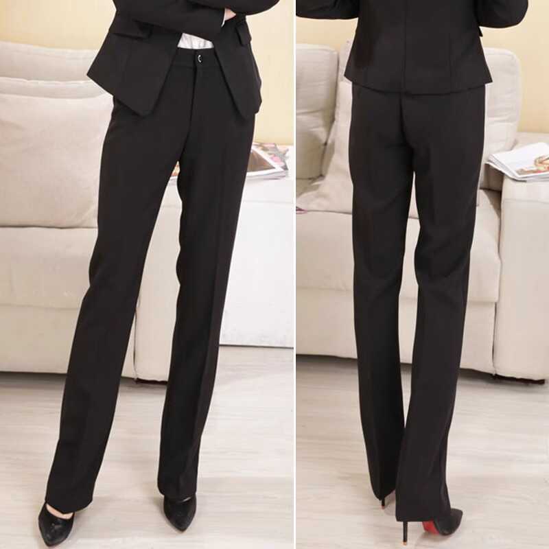 大码女装藏蓝色西裤加绒直筒裤职业裤子银行弹力工作裤女裤西装裤