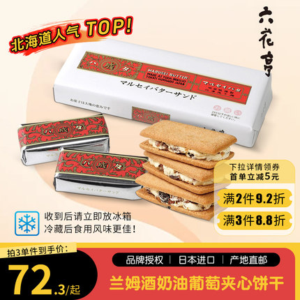 【预售】北海道六花亭朗姆酒提子饼干白巧克力葡萄干夹心曲奇饼干