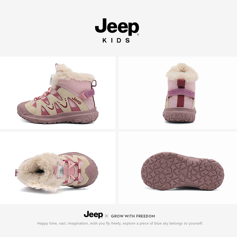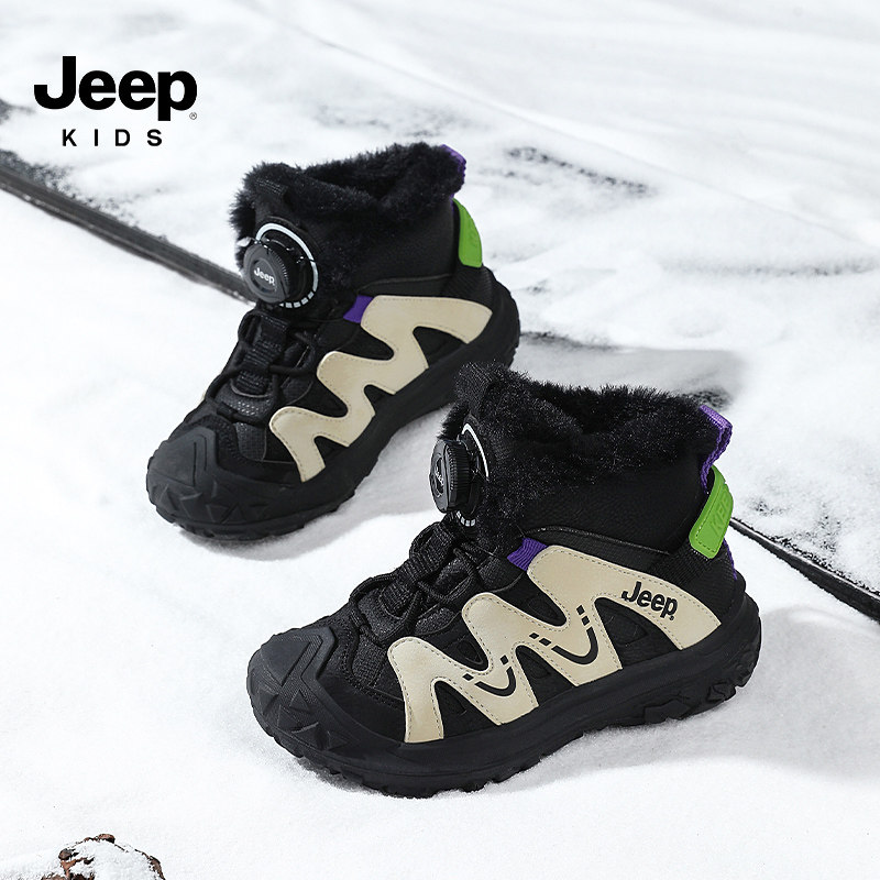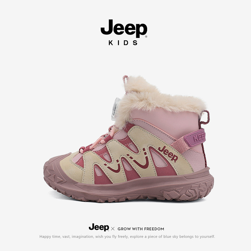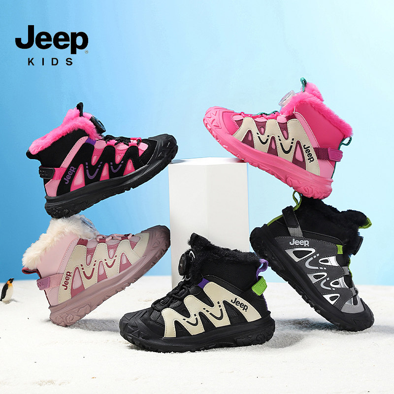Jeep童鞋女童雪地靴冬季加绒大棉鞋2025新款女孩防水防滑儿童鞋子