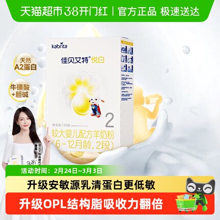 佳贝艾特进口婴幼儿羊奶粉2段悦白盒装新国标低敏好吸收OPL