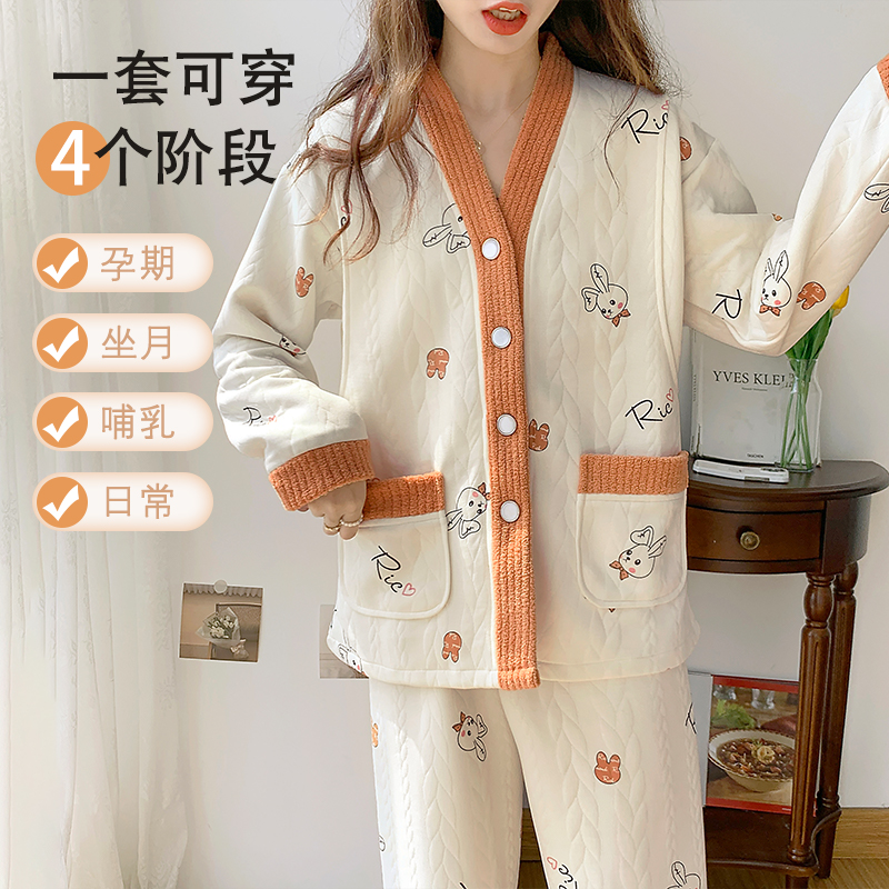 空气棉月子服秋冬季产后十月份11产妇天哺乳孕妇睡衣加厚10家居服