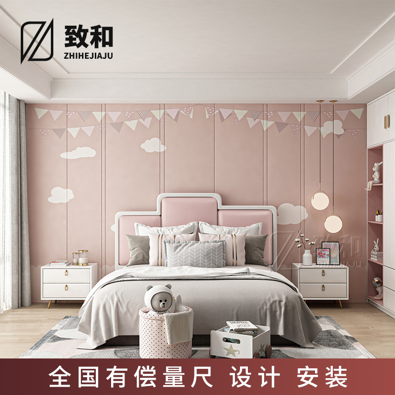 定制儿童房现代卧室硬包背景墙简约男孩女孩房灯光床头软包背景墙