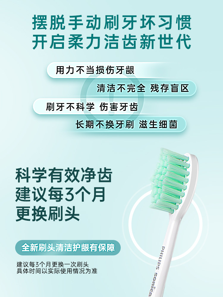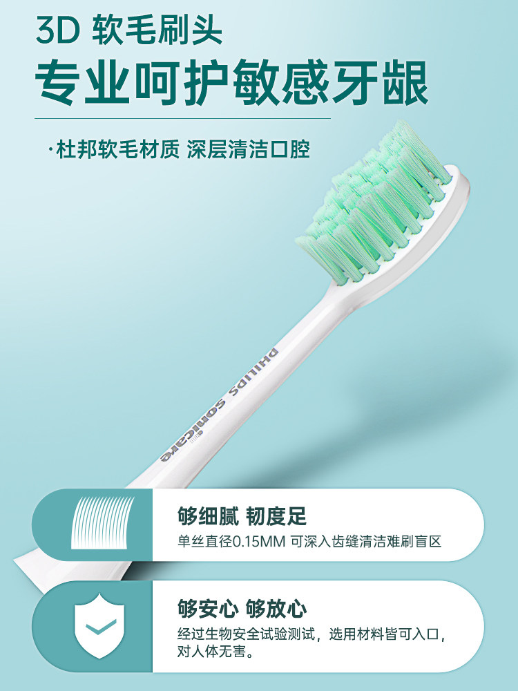 飞利浦电动牙刷原装刷头HX2021/2023适用小羽刷HX2421/2431替换