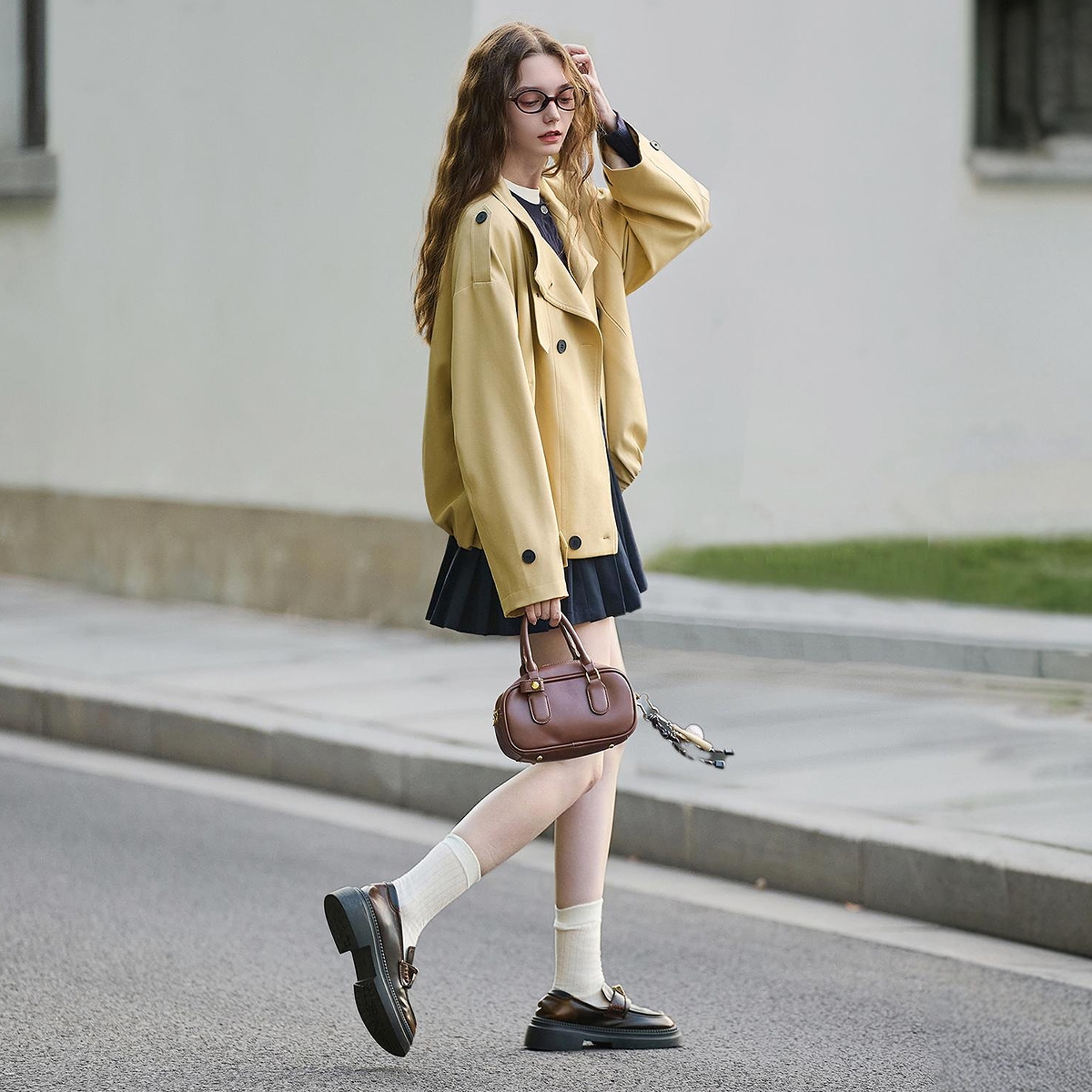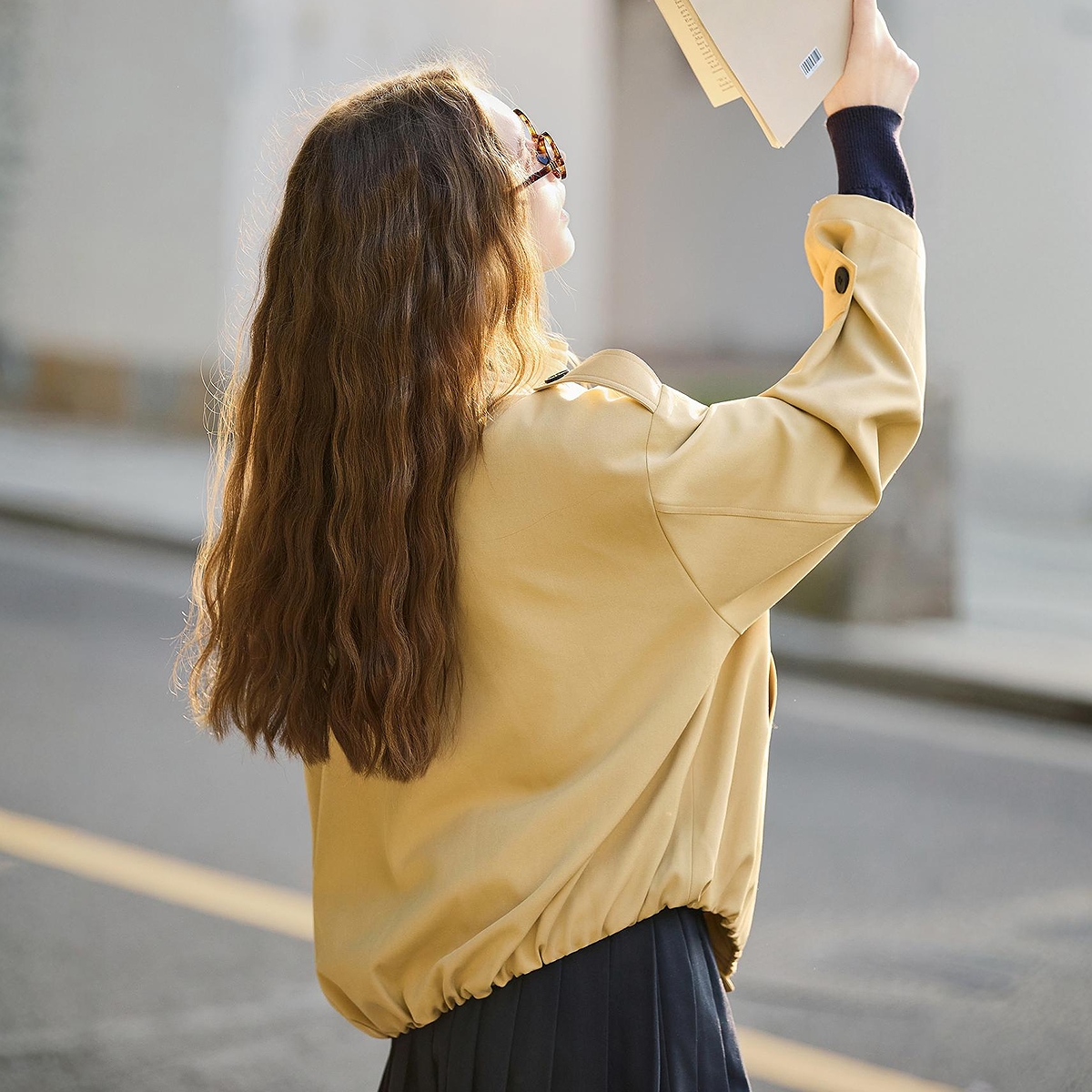 唐狮秋季新款短款风衣女极简廓形英伦风设计感小个子短外套2025tu