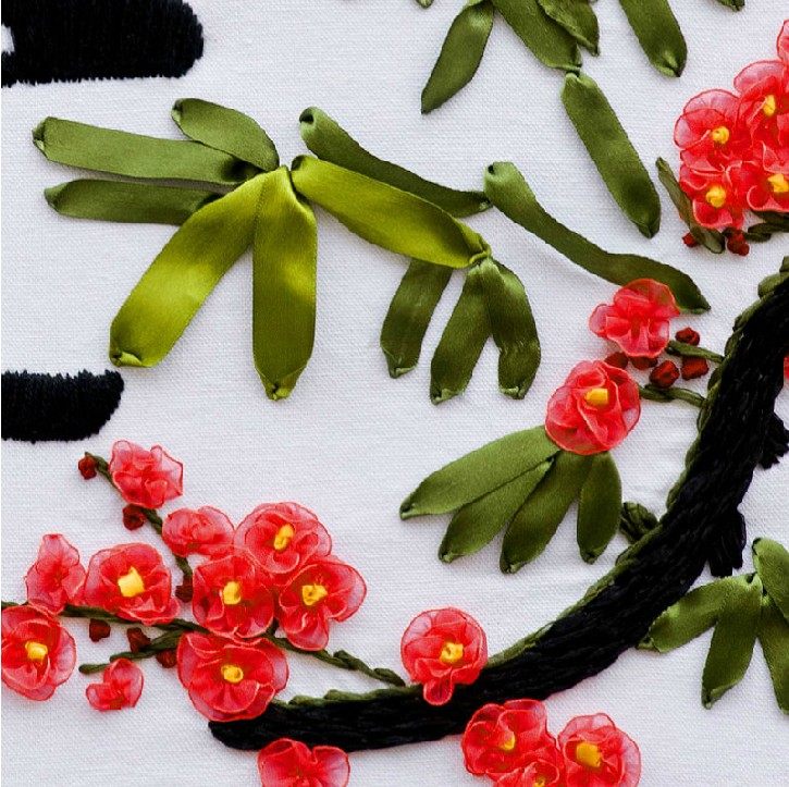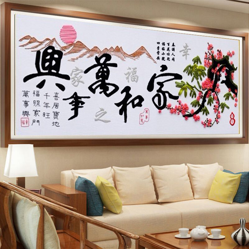 梅花包邮新款丝带绣客厅大挂画家和万事兴五5 彩带绣丝带非十字绣