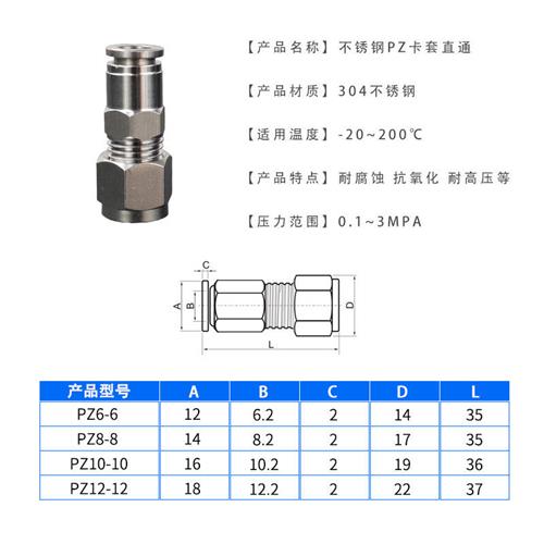 304不锈钢PZ卡套管接头气管快速超连结气动快插软管接头直通接头