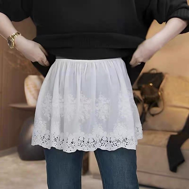 大码白色蕾丝屁帘半身裙2026秋冬新款叠穿百搭遮屁股短款打底裙女