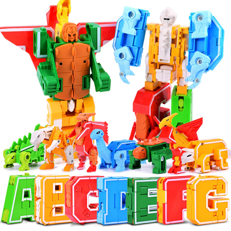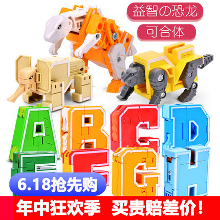 英文26字母变形玩具3岁恐龙动物金刚益智拼装机甲战队合体机器人6