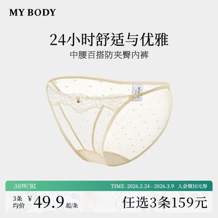 3件159|商场同款MYBODY内裤女棉质底裆性感纯欲网纱中腰三角裤