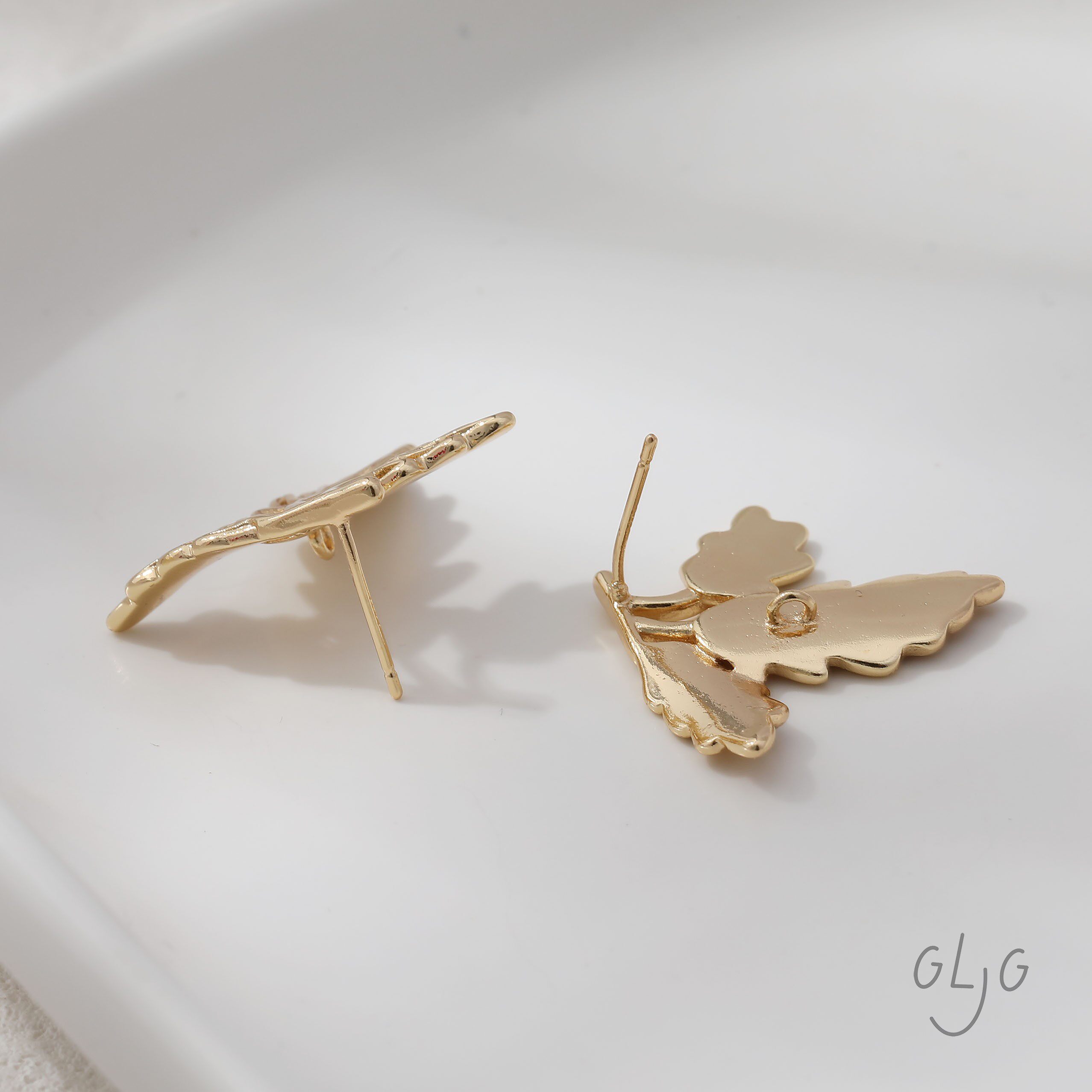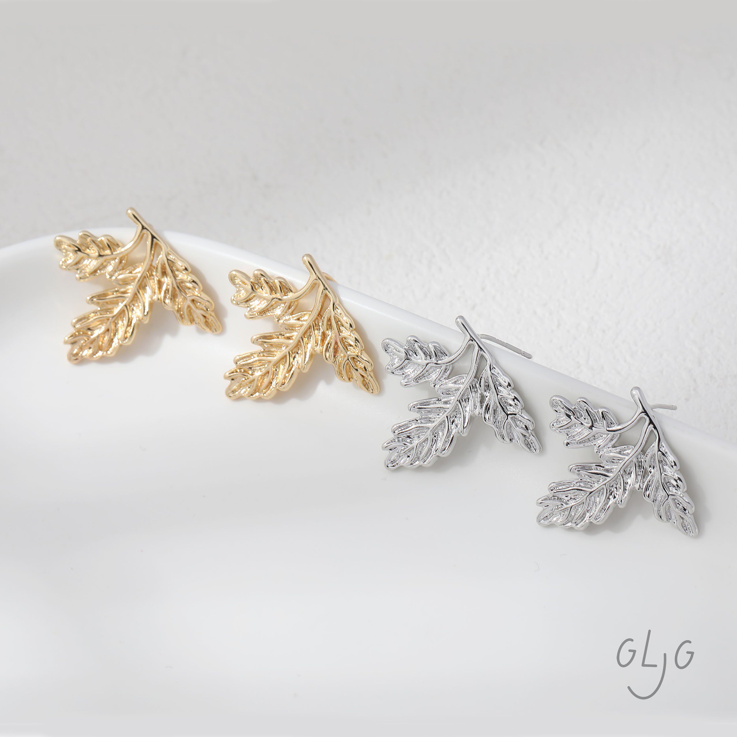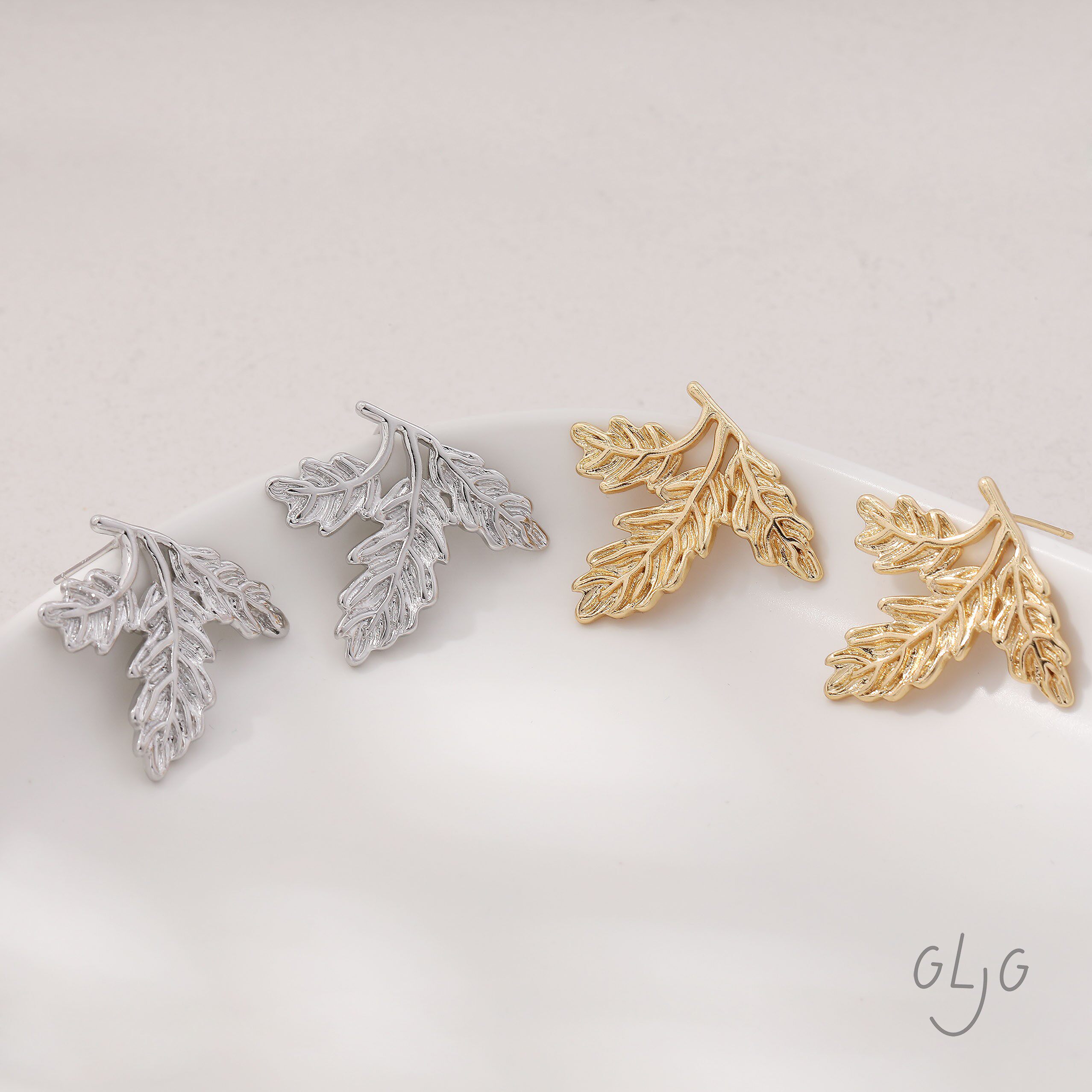 铜镀真金保色百搭法式枫叶叶子带吊耳钉diy手作耳饰材料配件