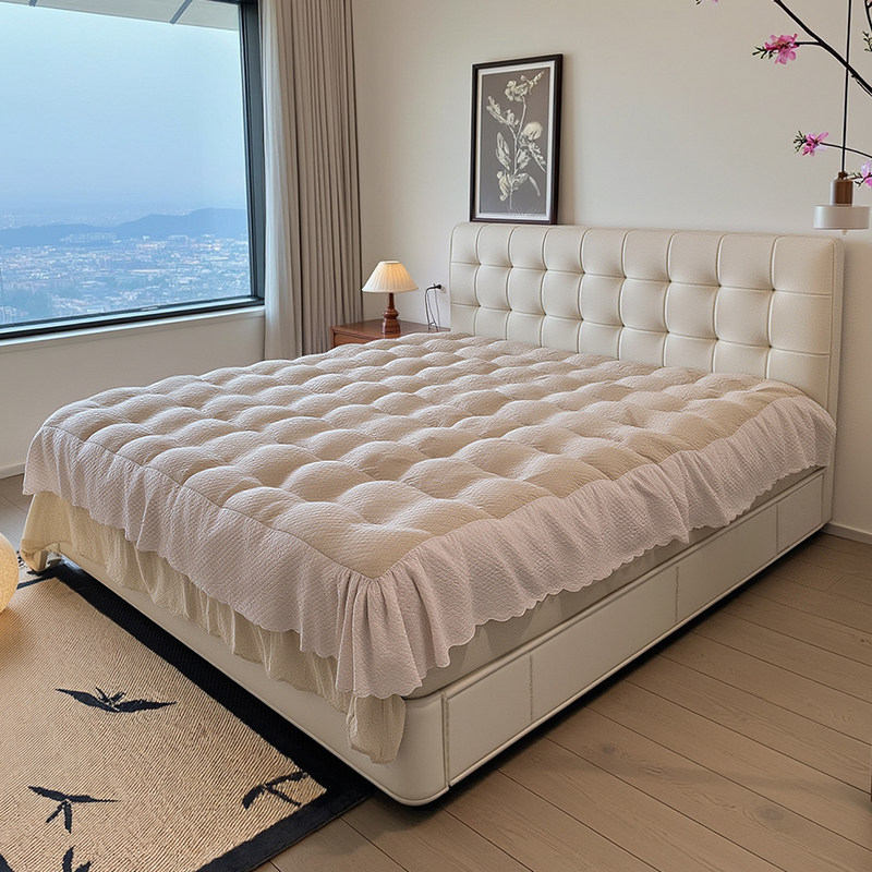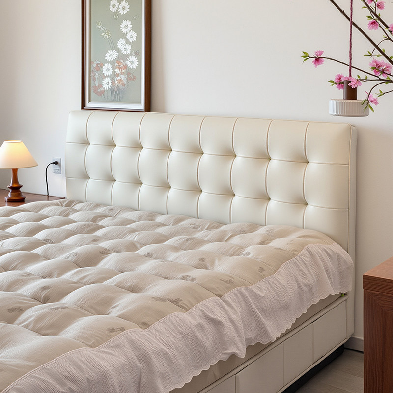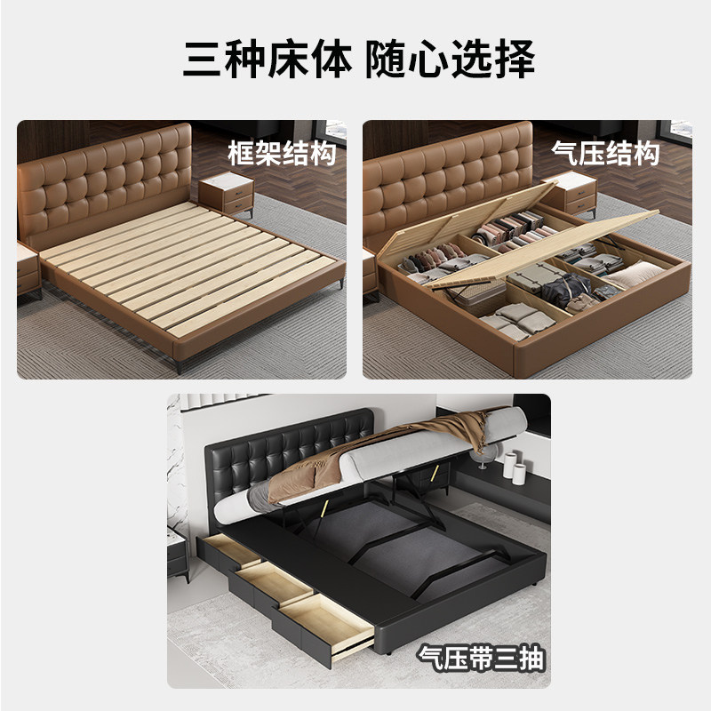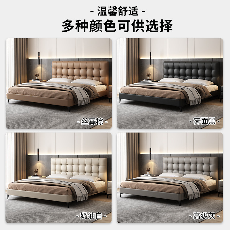 景开家具华夫格真皮软靠床现代1.8米2.2婚床意式极简主卧室双人床