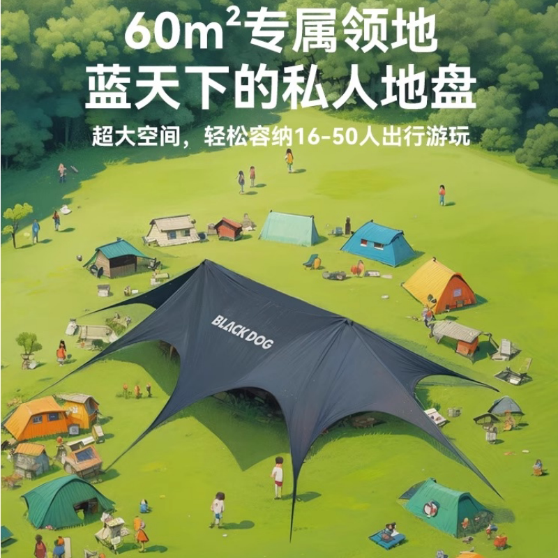 BLACKDOG黑狗遮光天幕帐篷户外黑胶速搭野营聚会露营免风绳遮阳棚