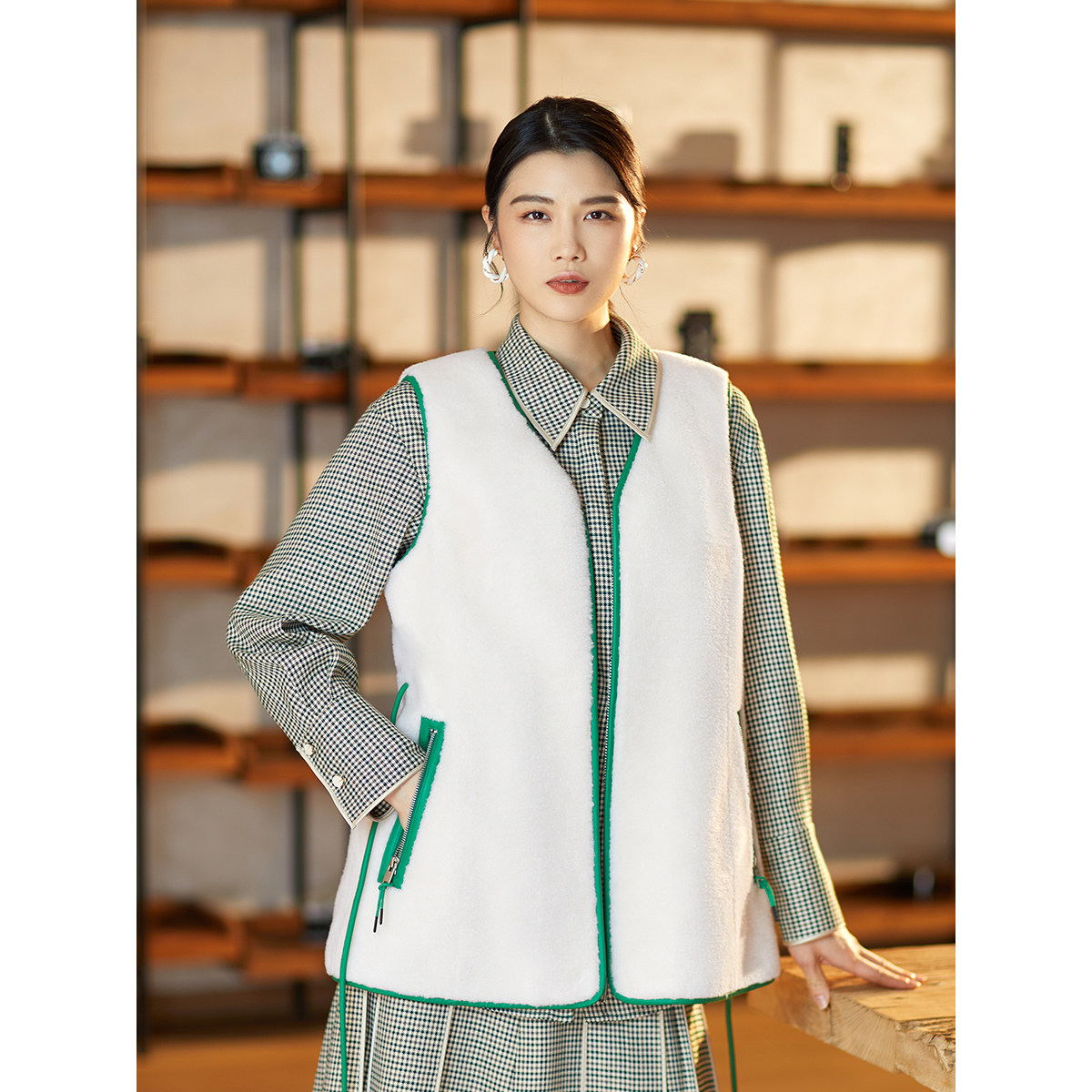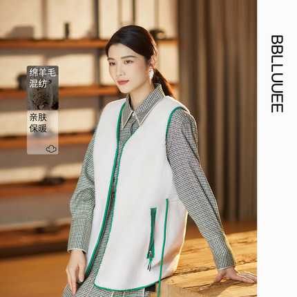 【活力撞色绵羊毛马甲】BBLLUUEE/粉蓝衣橱商场同款冬装V领大衣女