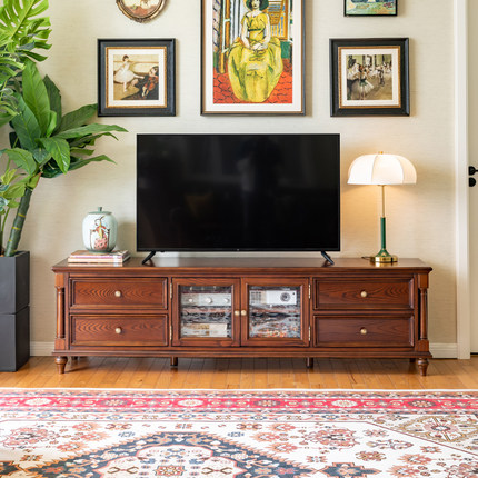 和年美家美式全实木复古2.2m马克电视柜黑胡桃色客厅家具储物地柜