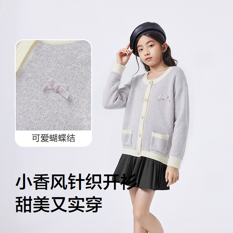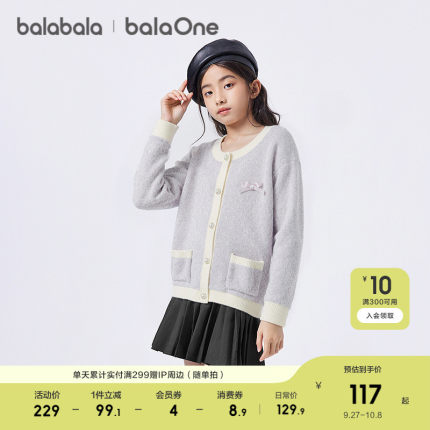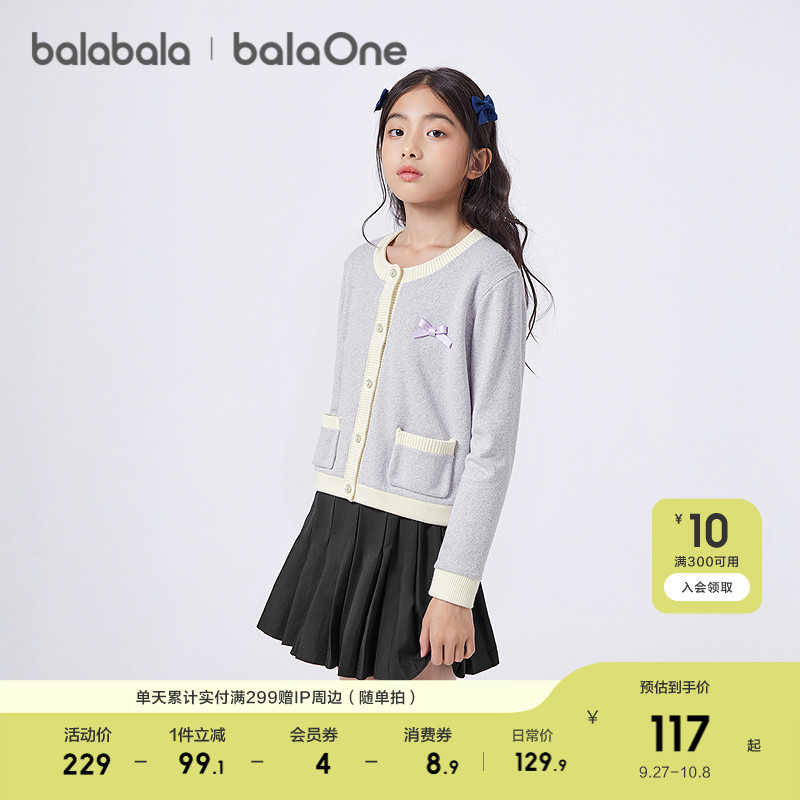 【balaOne】巴拉巴拉童装儿童开衫女童2025秋新款毛衣小香风甜美