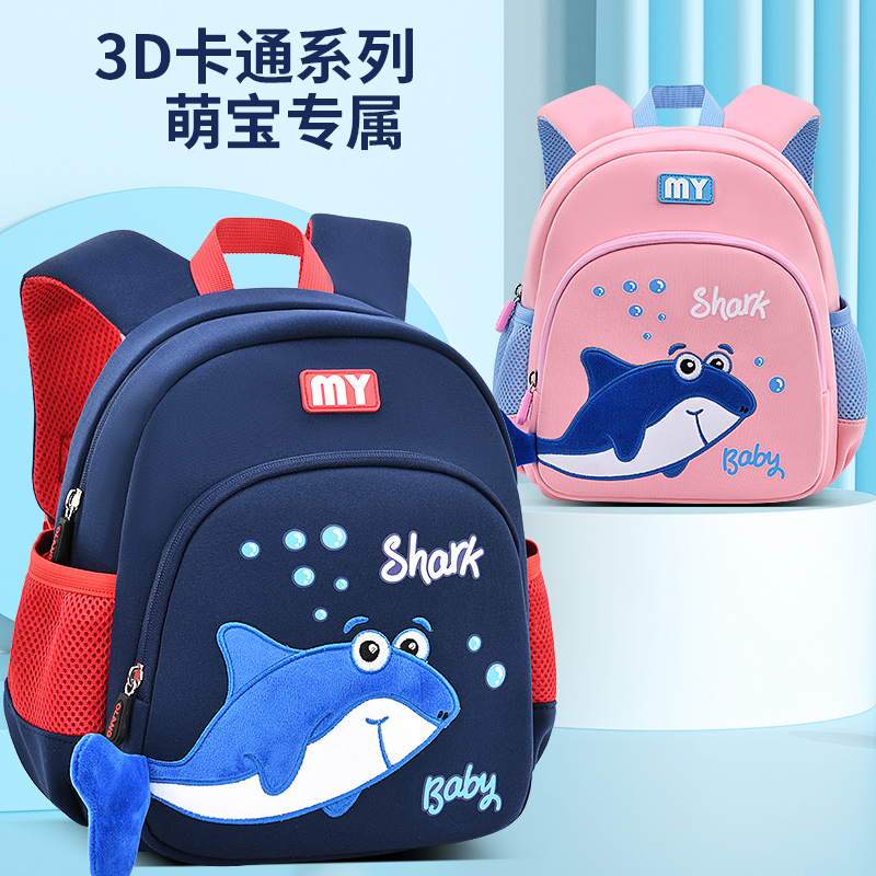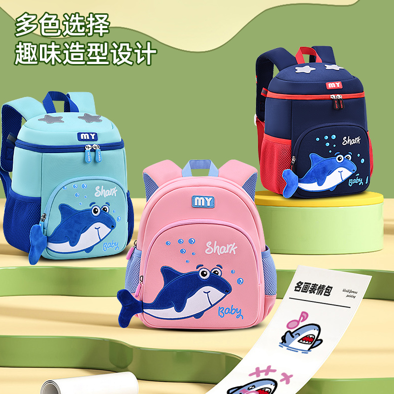 幼儿园书包3岁5岁小班中班鲨鱼可爱卡通儿童背包超轻便防水双肩包