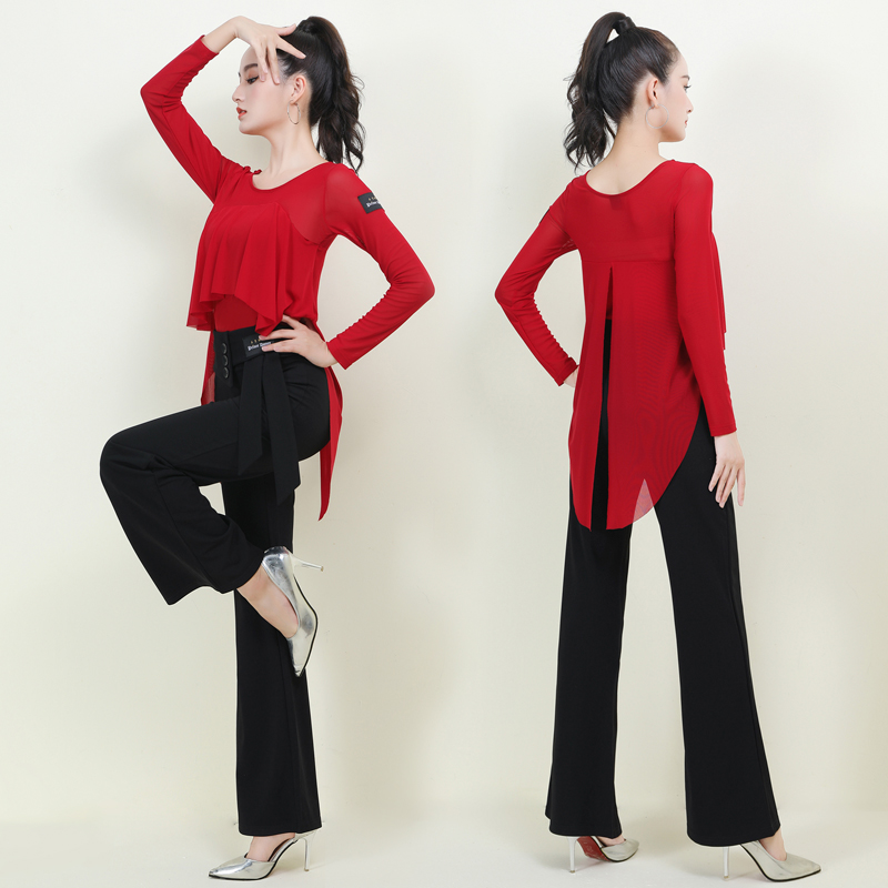 果果不不新款网纱燕尾连体长袖上衣吉特巴舞蹈表演出衣服同款服装