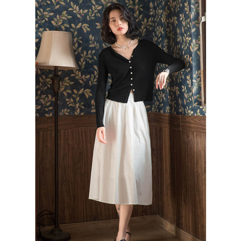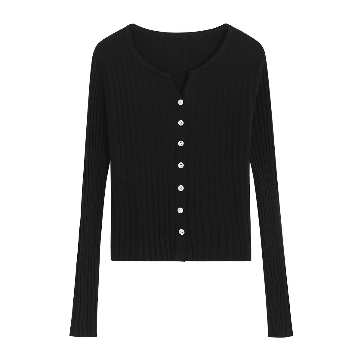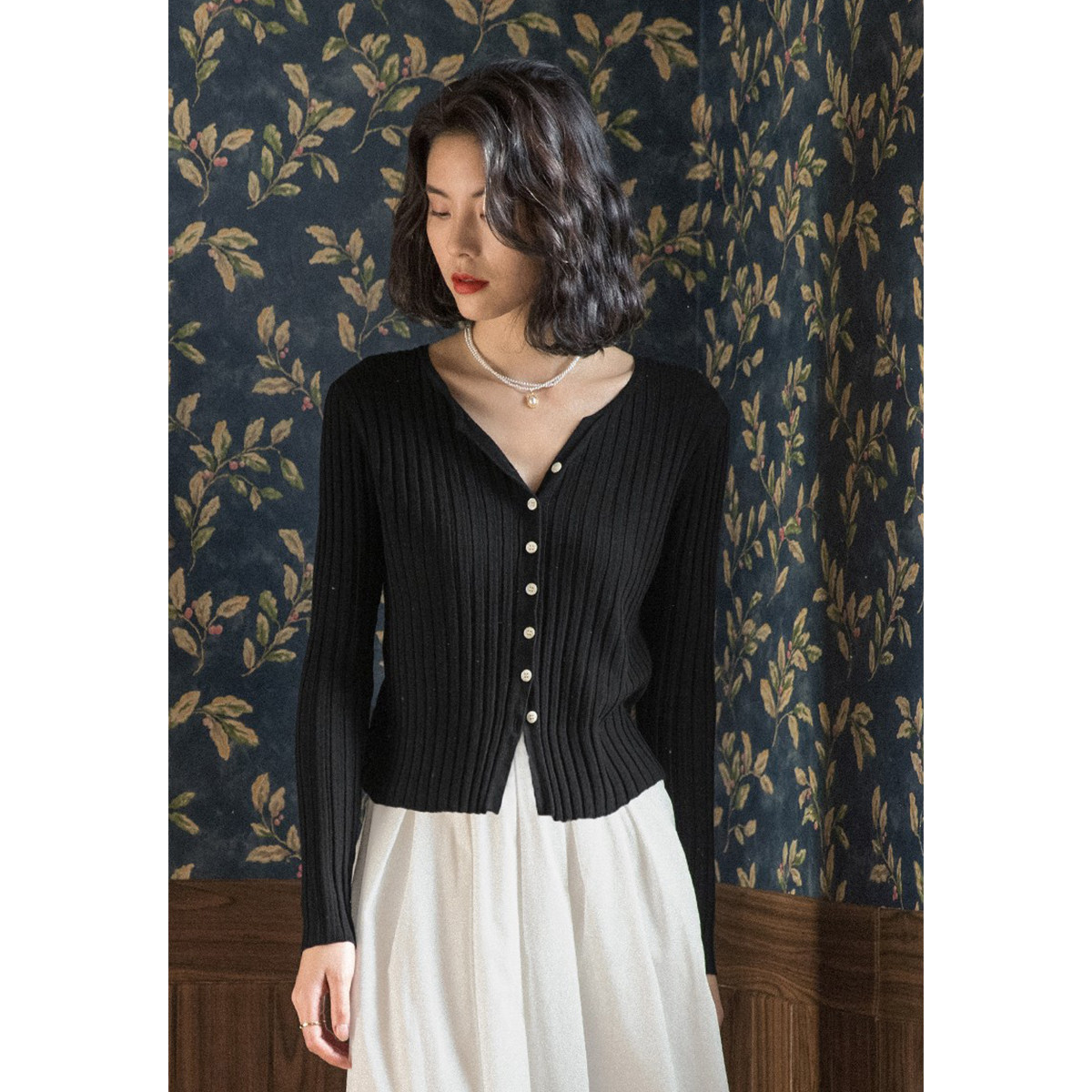 弥古黑色v领针织衫小外搭罩衫开衫女春秋v领短外套高级感法式上衣